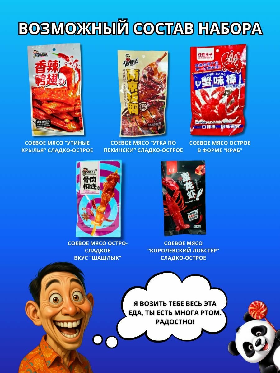 Ниже Вы можете прочитать отзывы на Набор снеков, соевое мясо Китайское. Азиатские острые колбаски, закуска к пиву, ознакомится с подробными характеристиками, посмотреть интересные обзоры и фотографии на Набор снеков, соевое мясо Китайское. Азиатские острые колбаски, закуска к пиву.