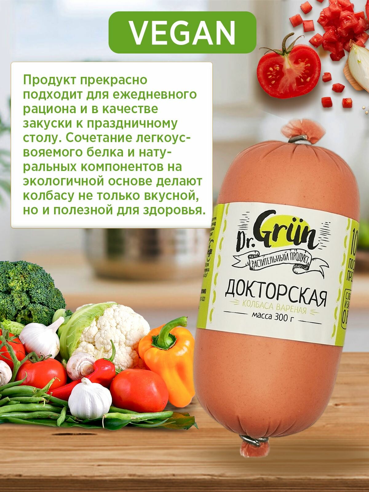 Колбаса "Докторская" вареная, растительный продукт 300 гр Dr. Grun интересное: