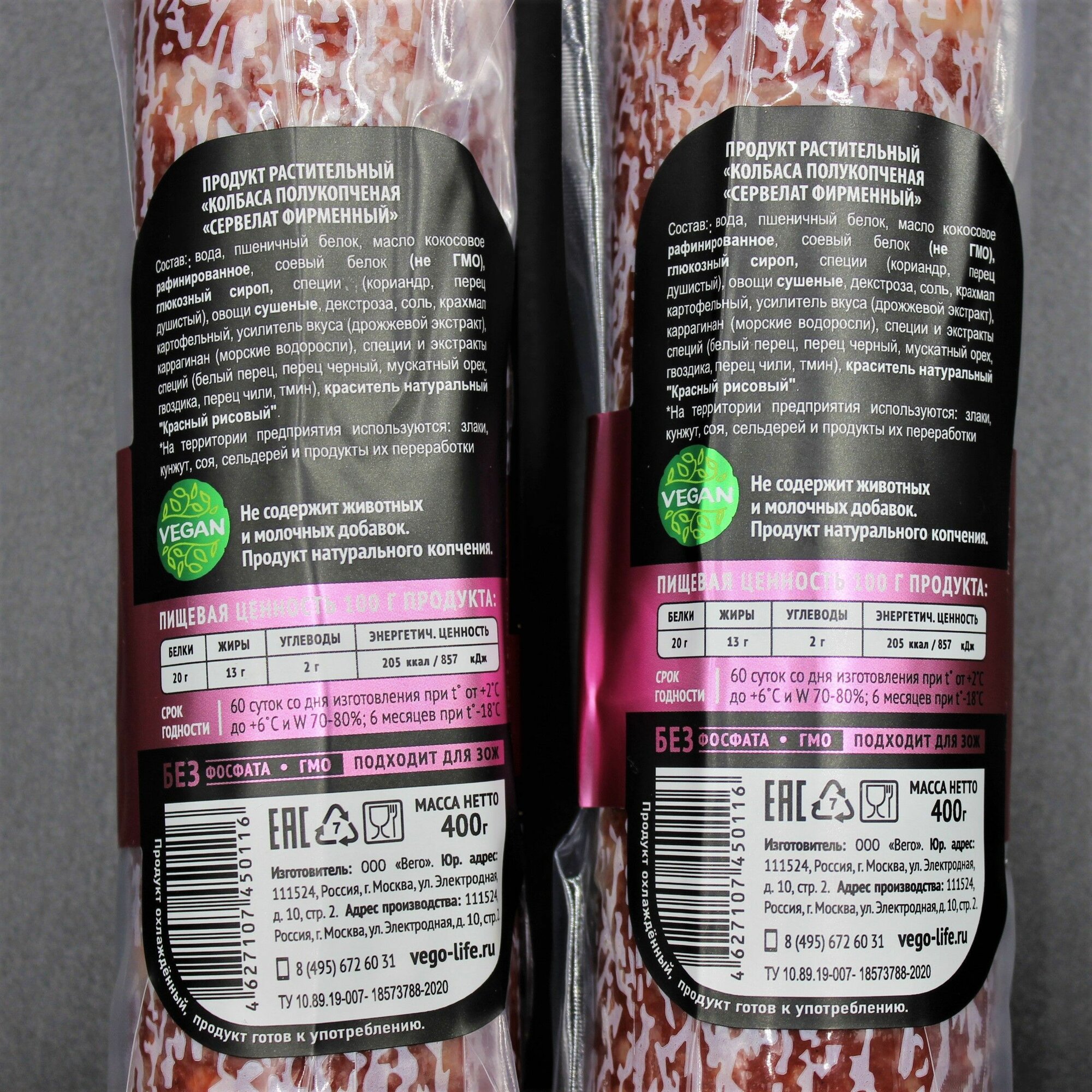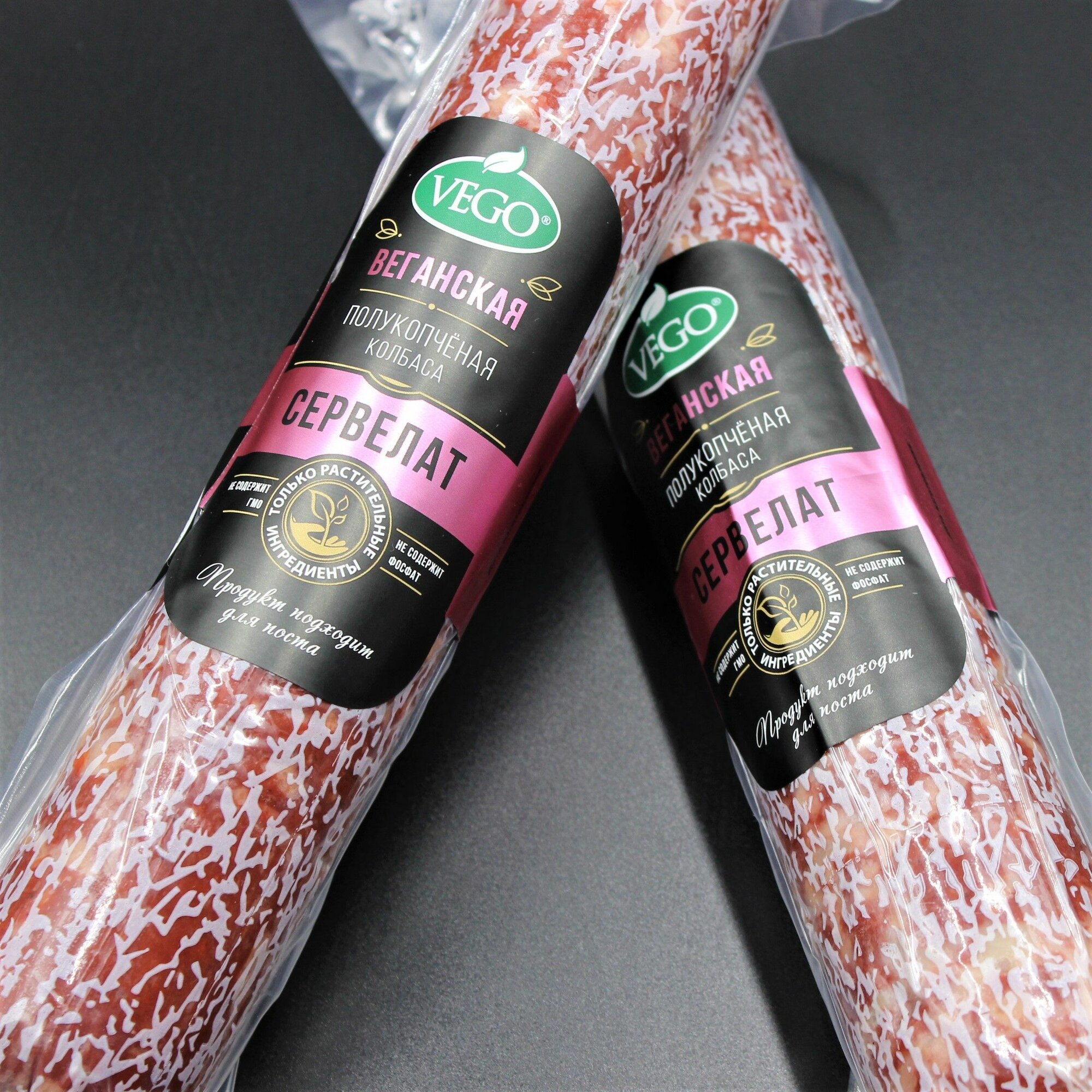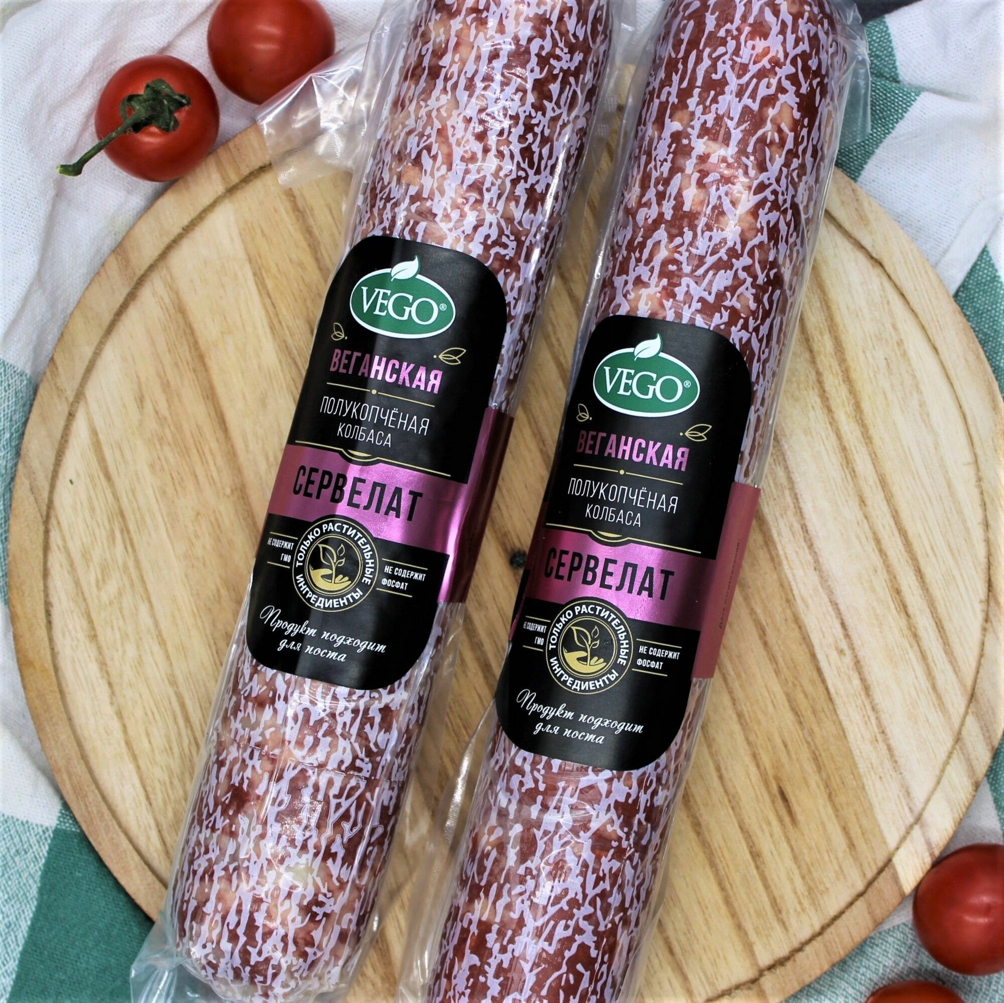 Колбаса вегетарианская растительная полукопченая "Сервелат фирменный" VEGO 2 штуки по 400 г интересное: