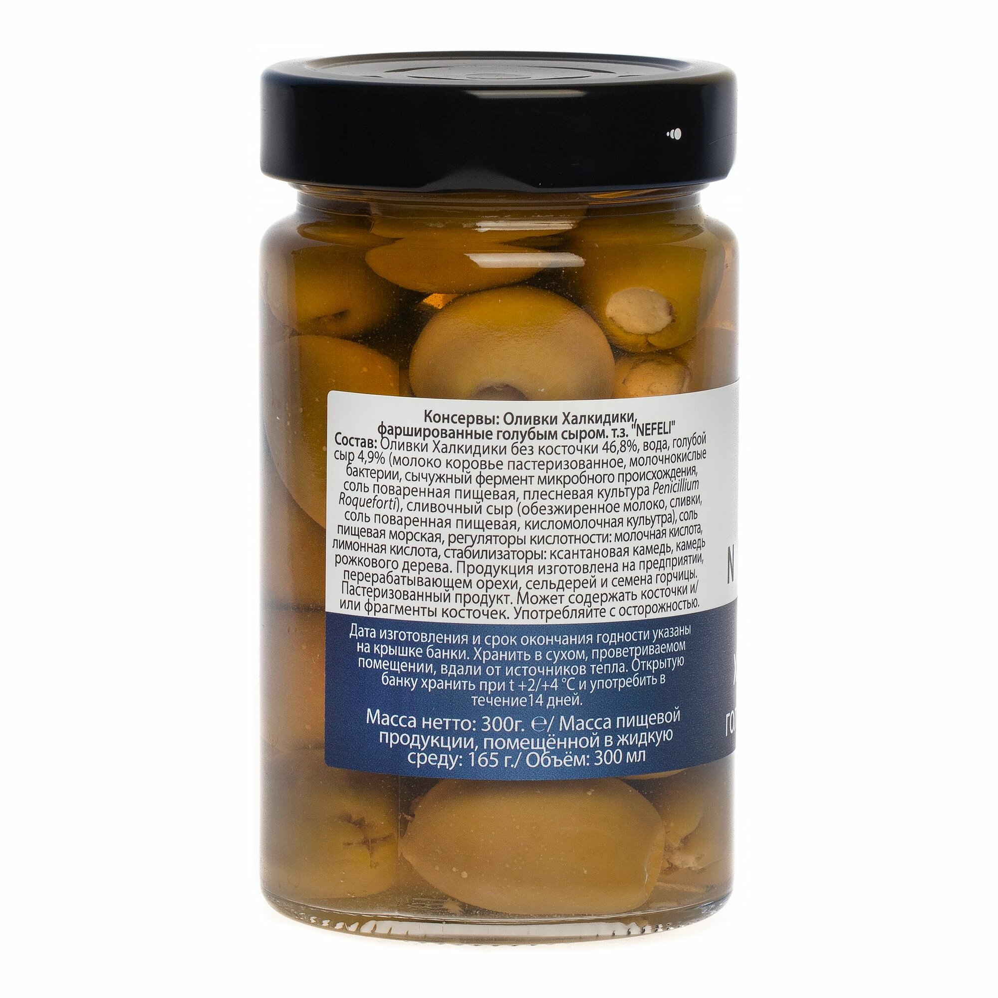 Купить Оливки NEFELI Халкидики с голубым сыром , 300 г