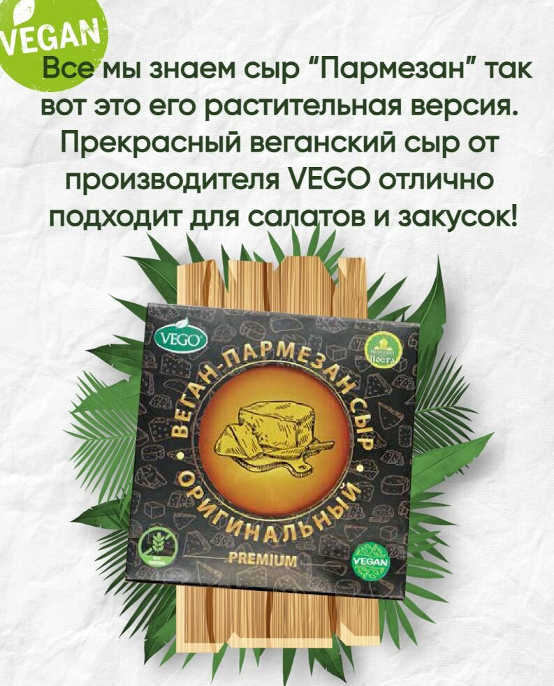 Продукт растительный постный Сыр Веган-Пармезан Оригинальный VEGO, 350 г интересное: