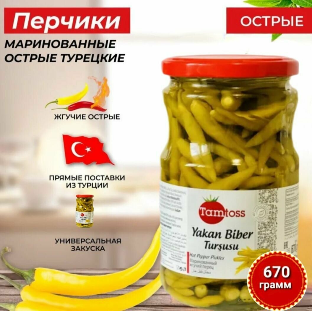 TAMTOSS/Перец жгучий маринованный закуска , Yakan Biber Tursusu 670 грамм( Net 370) интересное:
