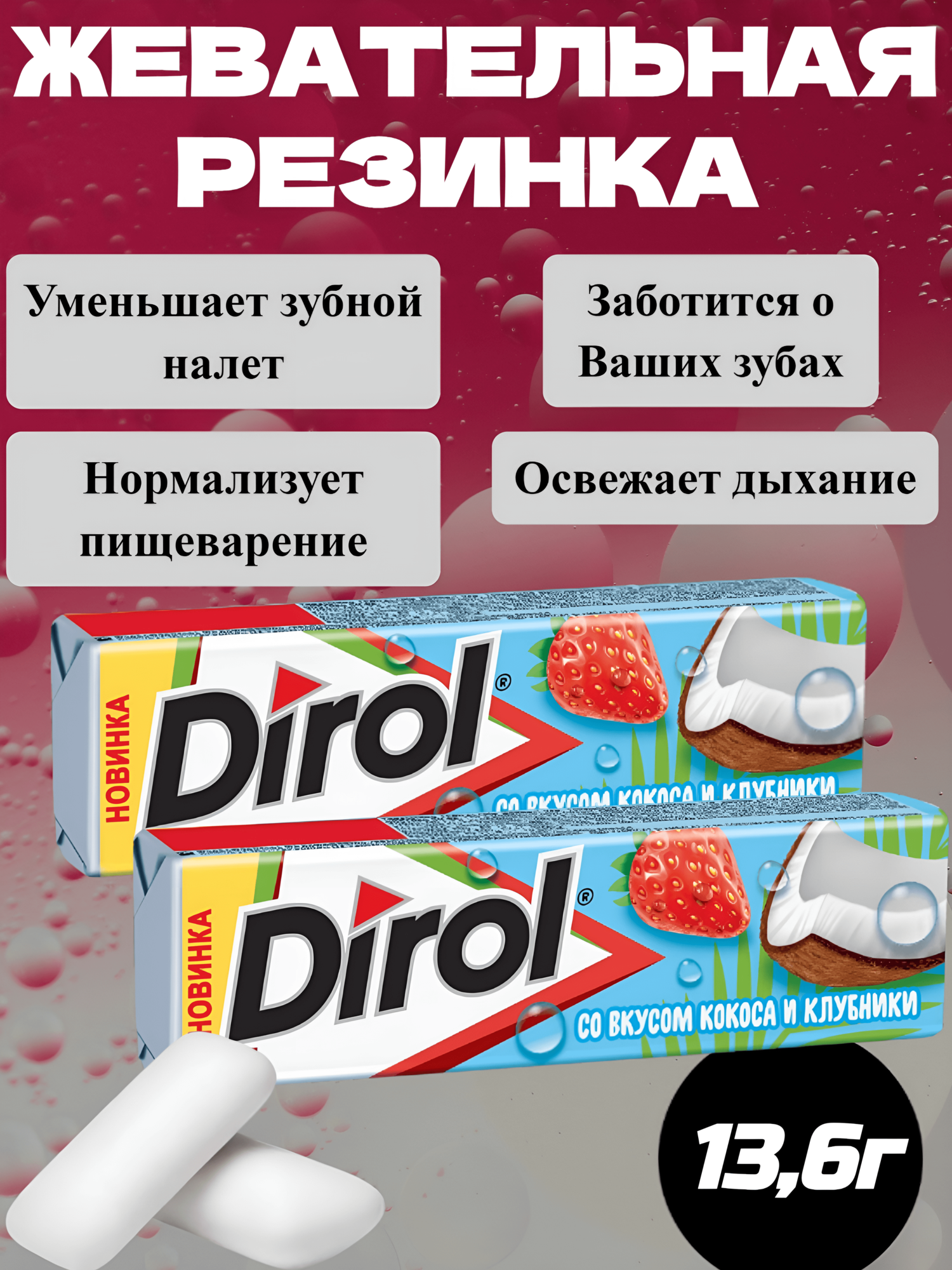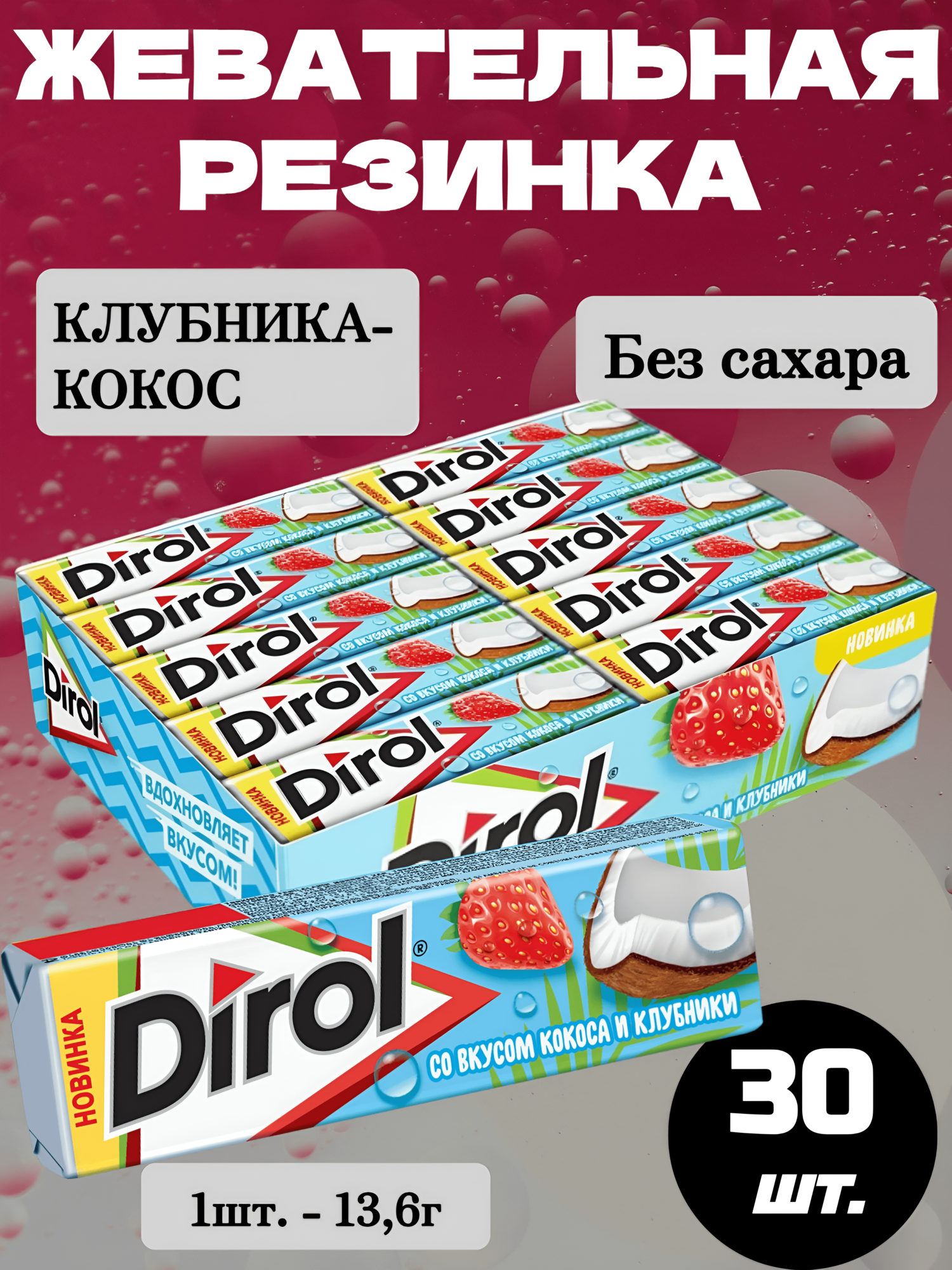 Жевательная резинка Дирол Клубника-Кокос, 30 шт.*13,6г, без сахара интересное: