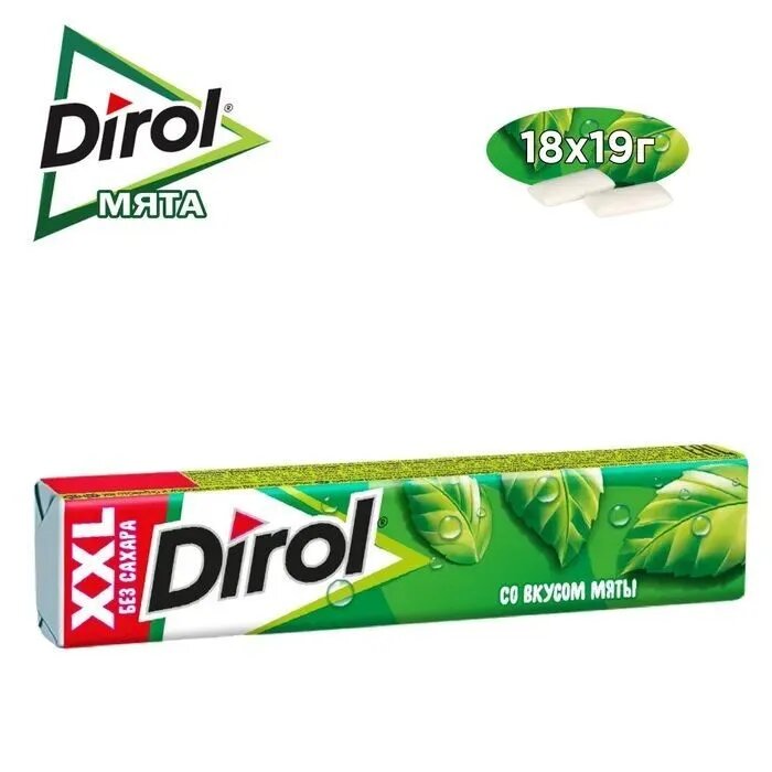 Жевательная резинка Dirol XXL (дирол) Мята, 18 шт по 19 гр. интересное: