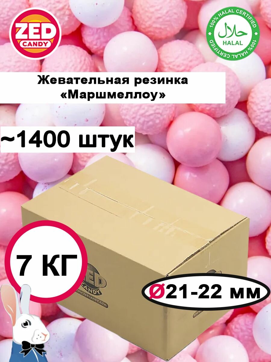 Купить Жевательная резинка "Маршмеллоу" ZED Candy в коробе 7 кг, 22 мм (для праздников и торговых автоматов)