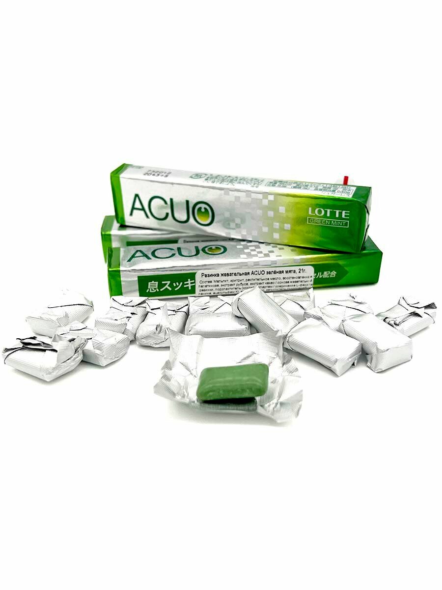 Купить LOTTE Жевательная резинка без сахара зеленая мята 3 пачки ACUO Green Mint, 3x21 г