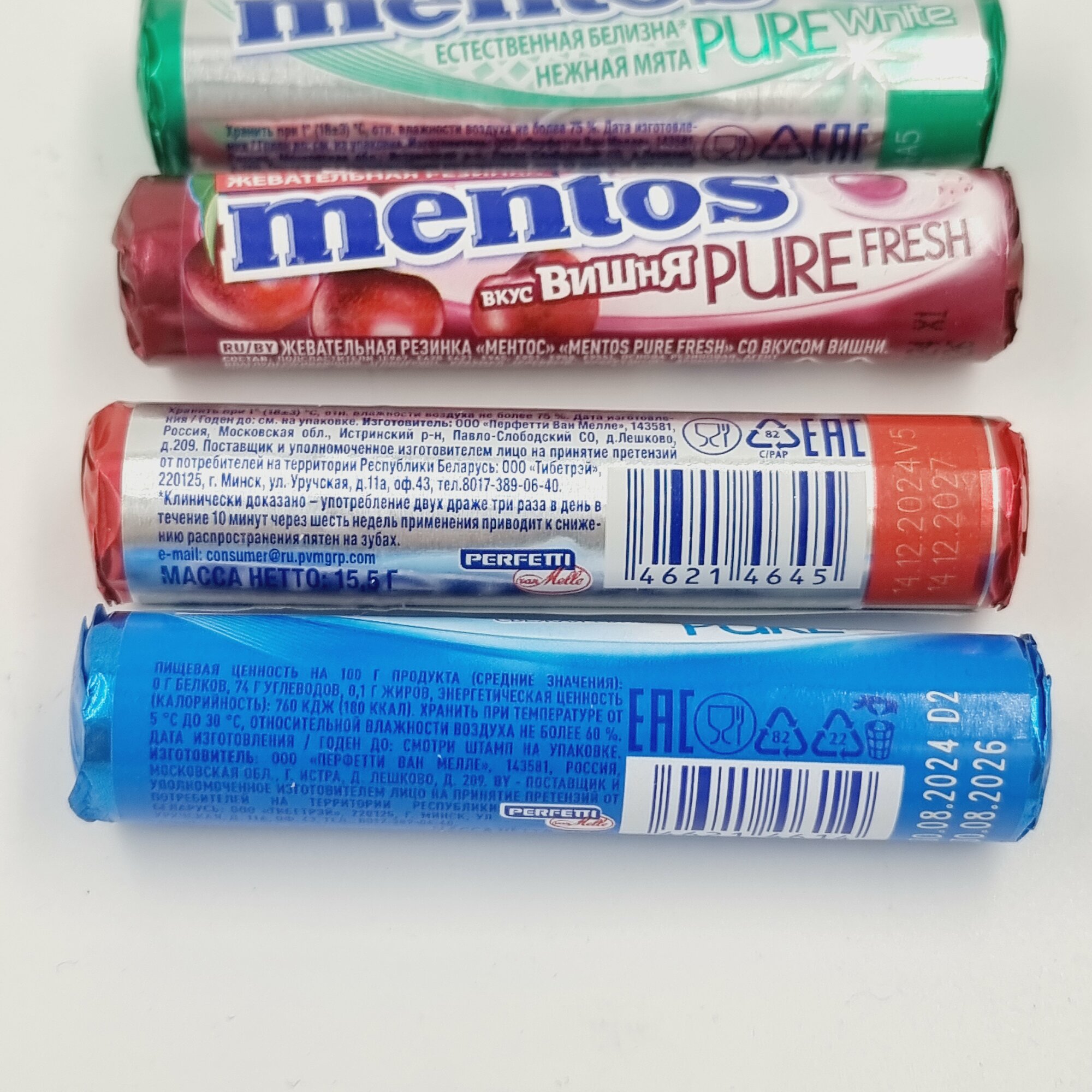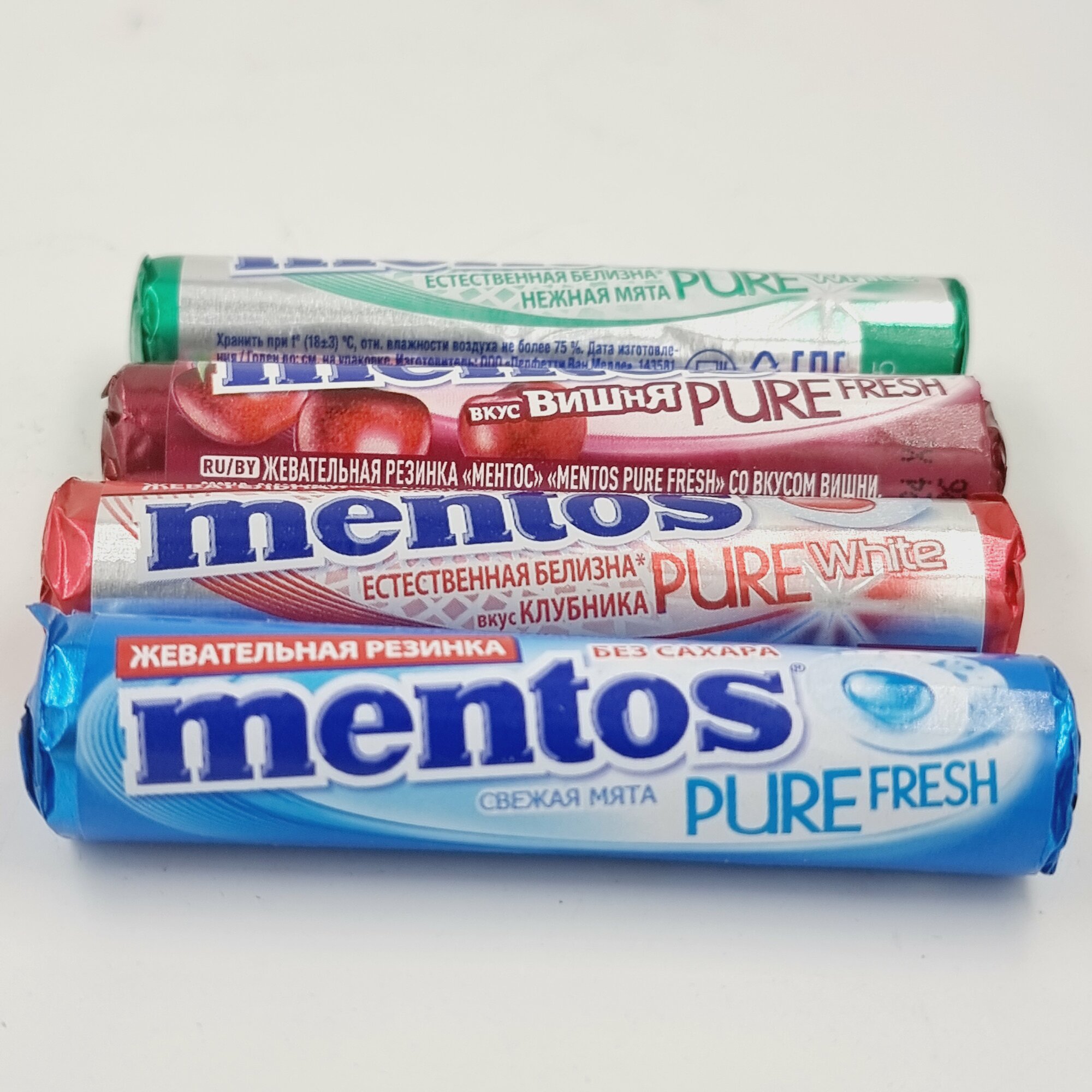 Ниже Вы можете прочитать отзывы на Mentos жевательная резинка Pure White вкус Клубника, Нежная мята, Вишня, Свежая мята (15,5х4) 62 г, ознакомится с подробными характеристиками, посмотреть интересные обзоры и фотографии на Mentos жевательная резинка Pure White вкус Клубника, Нежная мята, Вишня, Свежая мята (15,5х4) 62 г.