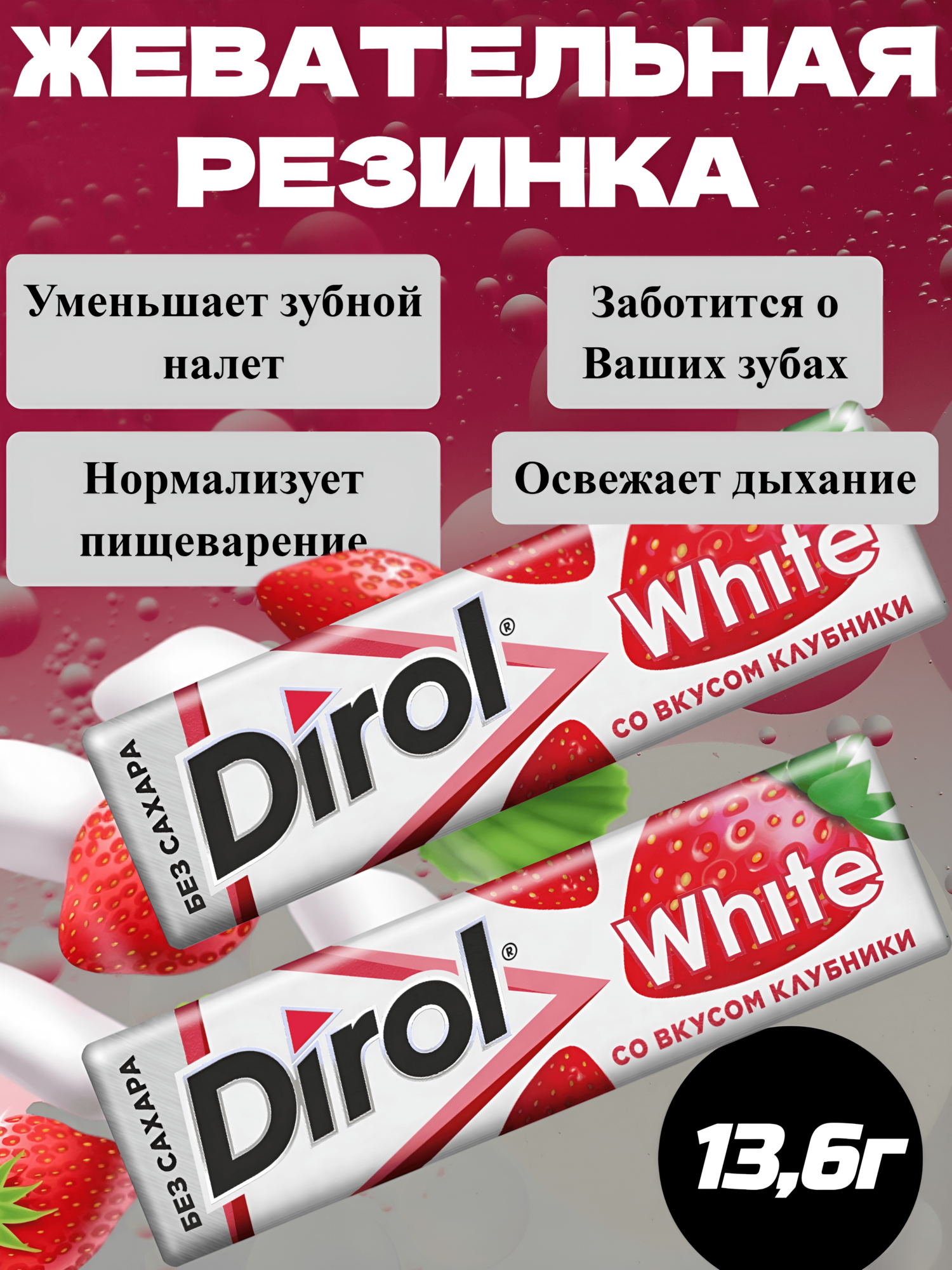 Жевательная резинка Дирол White Клубника, 30 шт.*13,6г, без сахара интересное: