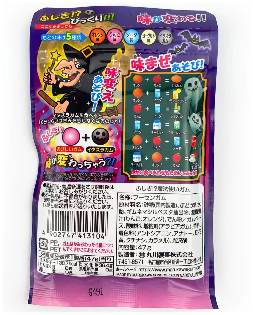 Японская жевательная резинка "Колдунья"меняющая вкус(клубника, йогурт, апельсин, мускат) , производство Marukawa, Япония. интересное: