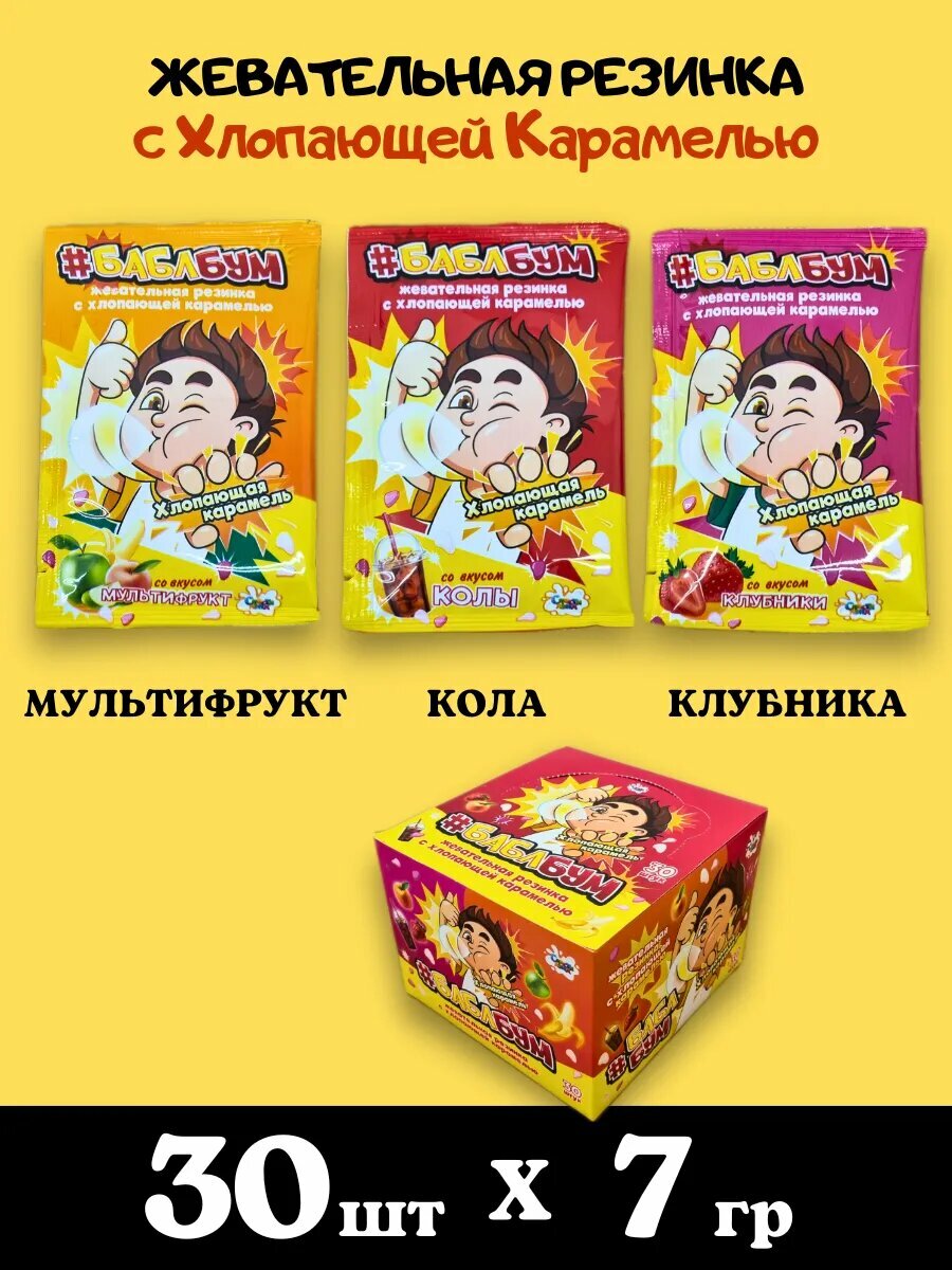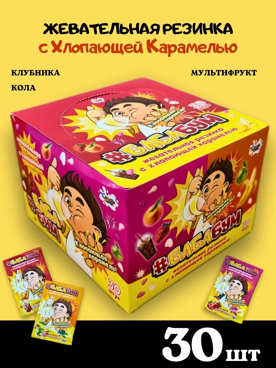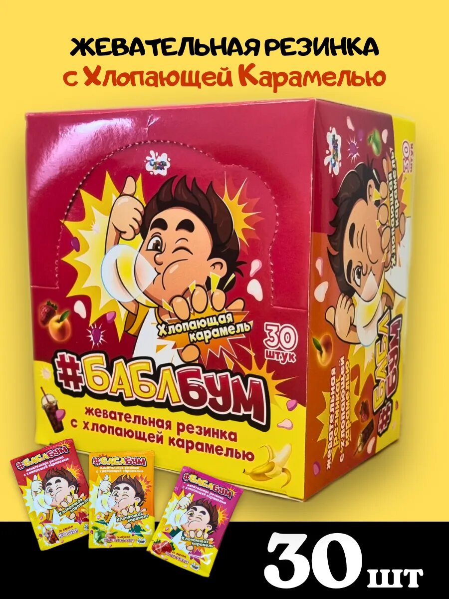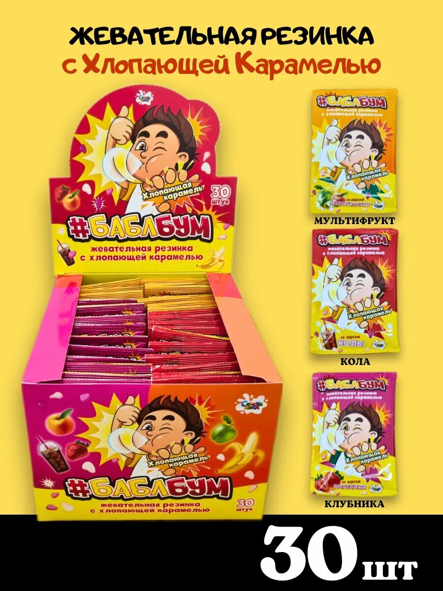 Жевательная резинка "Бабл Бум", с взрывной карамелью, без ГМО, 30шт. интересное: