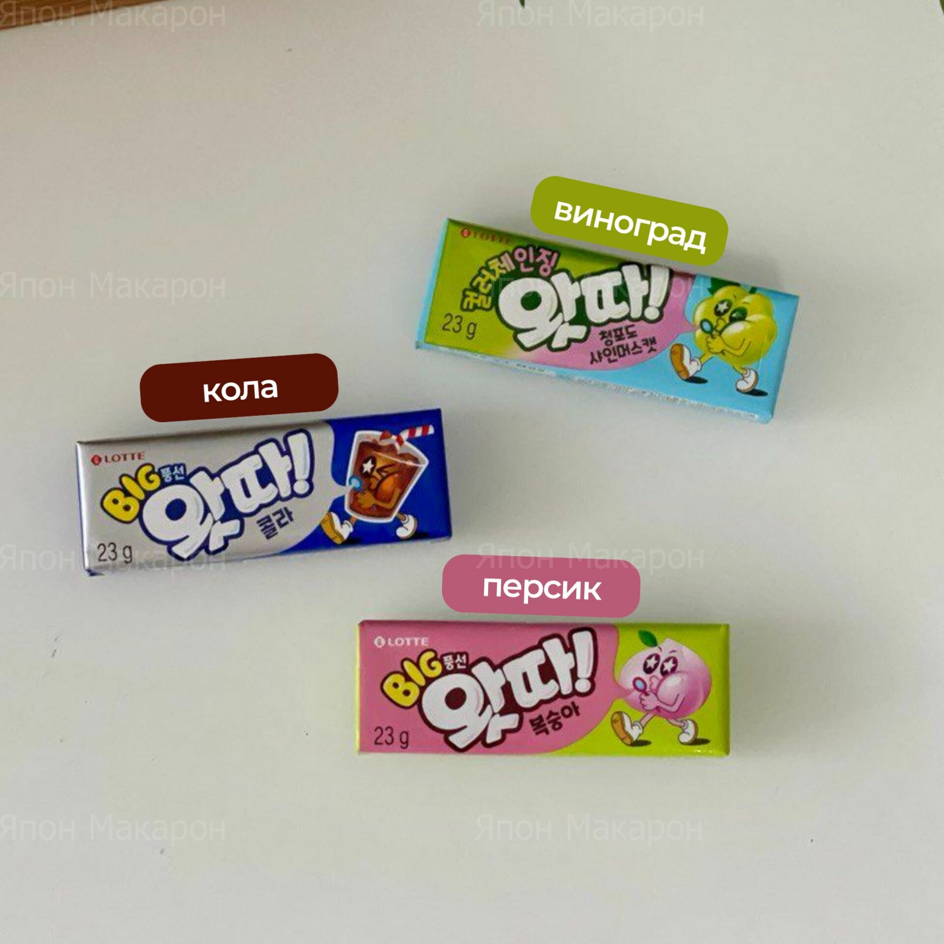 Жевательная резинка Lotte WHATTA кола, персик, зеленый виноград интересное: