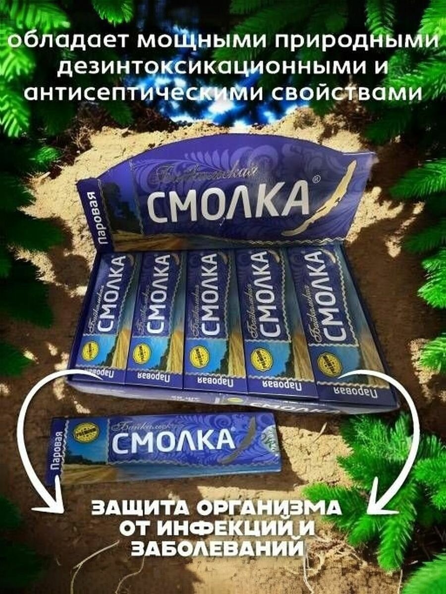 СохранитьЖевательная Смолка "Байкальская" / Жевательная резинка / Сера, натуральный продукт, без сахара, 20 пачек (Паровая) интересное: