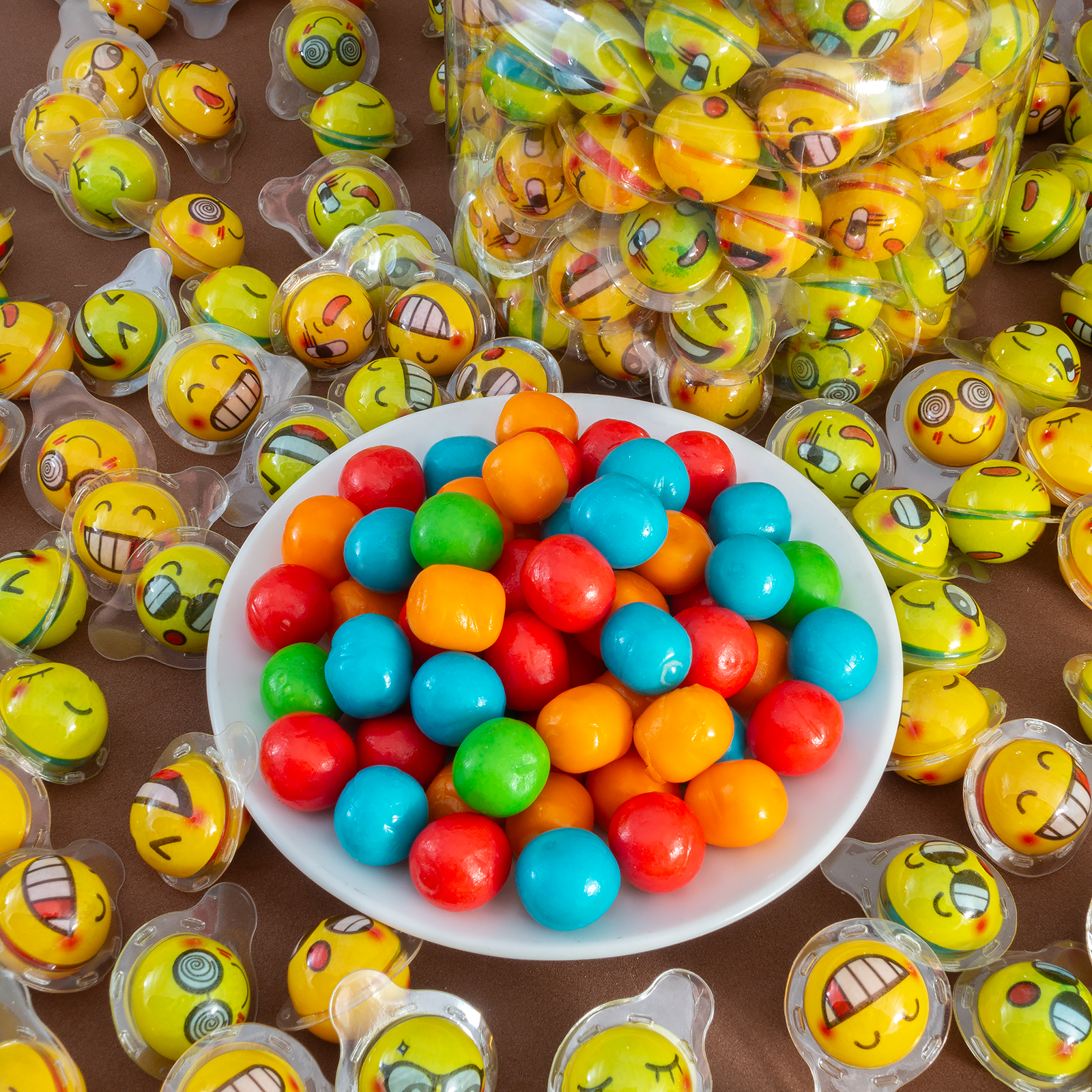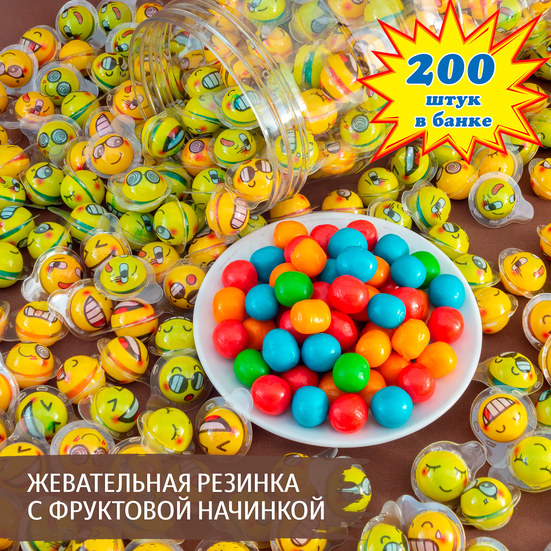 Купить Жевательная резинка Смайлики (200 шт. по 2 г). Фруктовая жвачка в блистерах и банке для детей