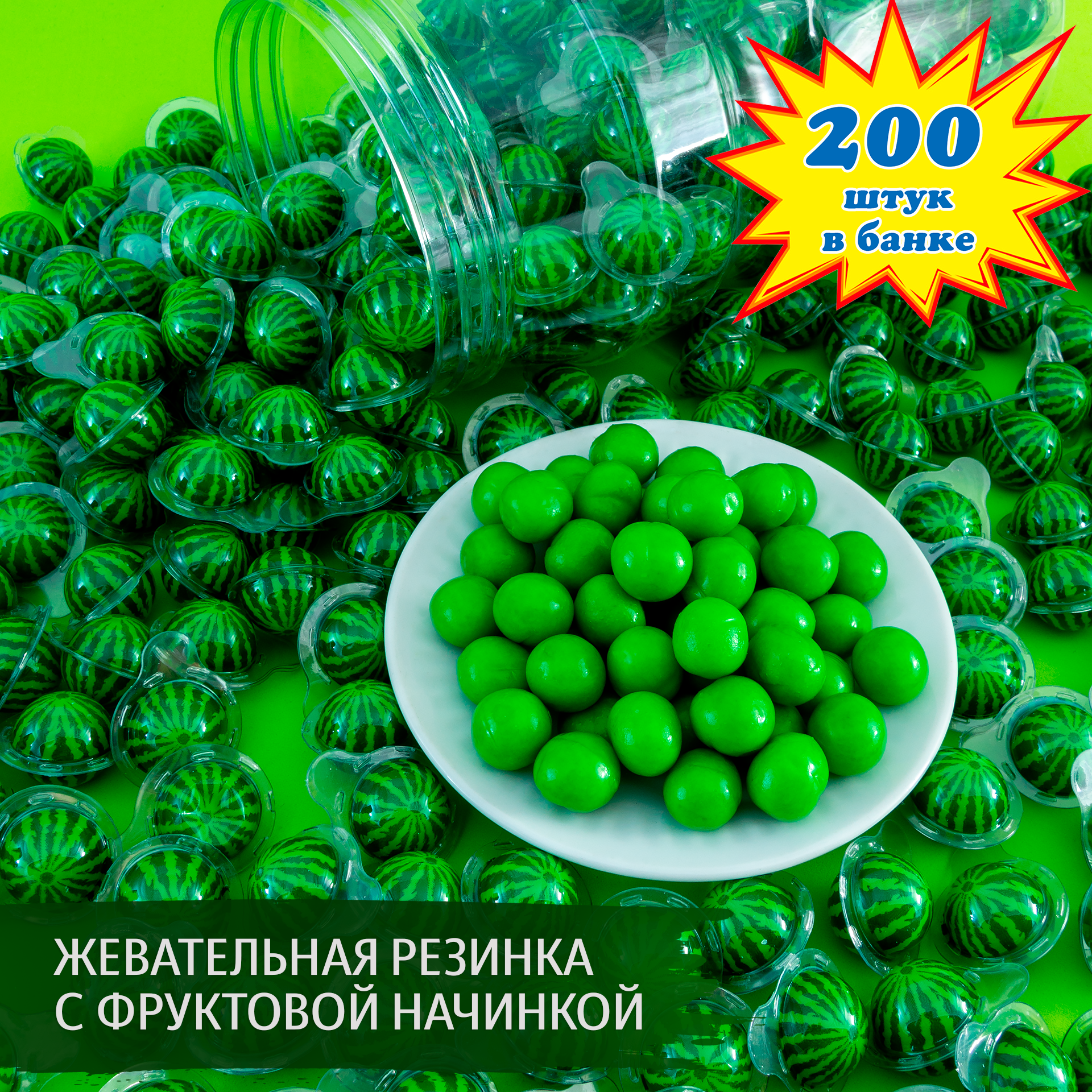 Купить Жевательная резинка Арбуз с начинкой (200 шт. по 2 г). Арбузная жвачка в блистерах и банке
