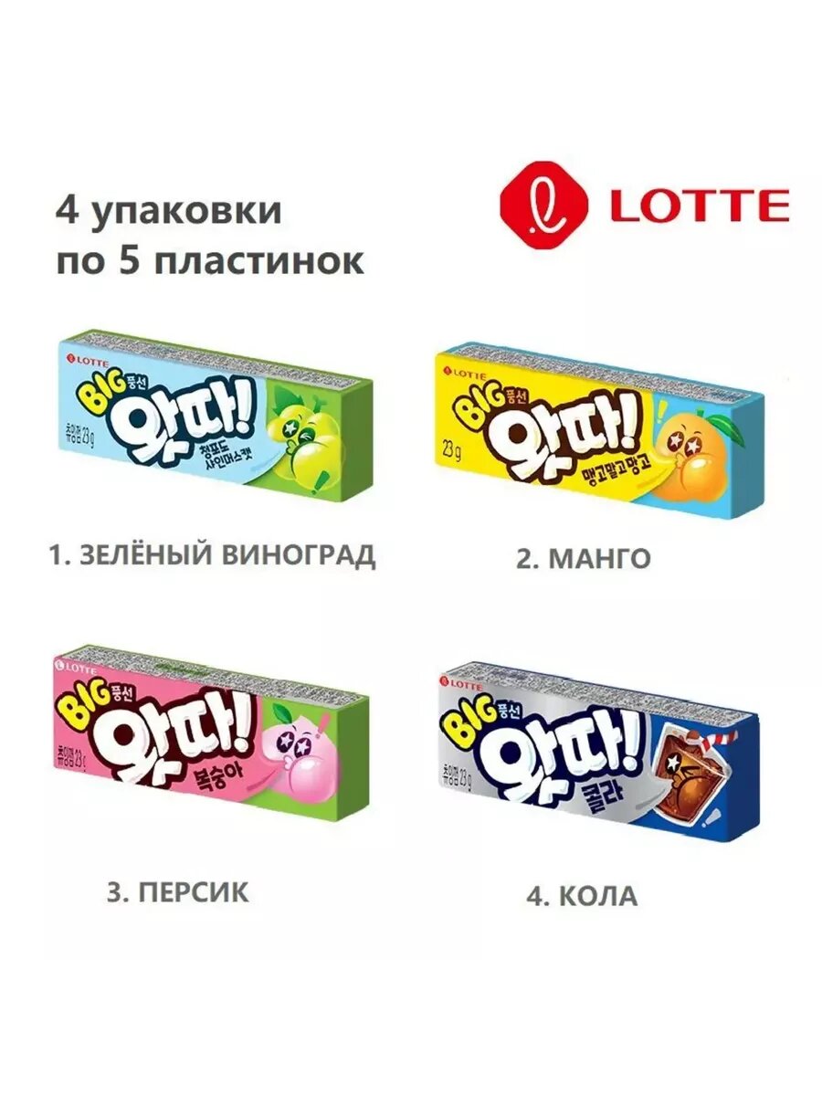 Жвачка Lotte WHATTA кола, персик, зеленый виноград, лимон интересное: