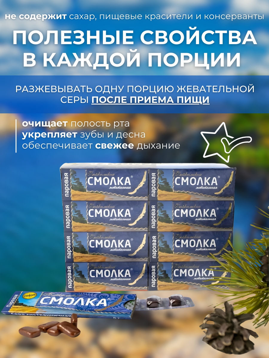 Жевательная резинка "Смолка Байкальская" - паровая (упаковка) интересное: