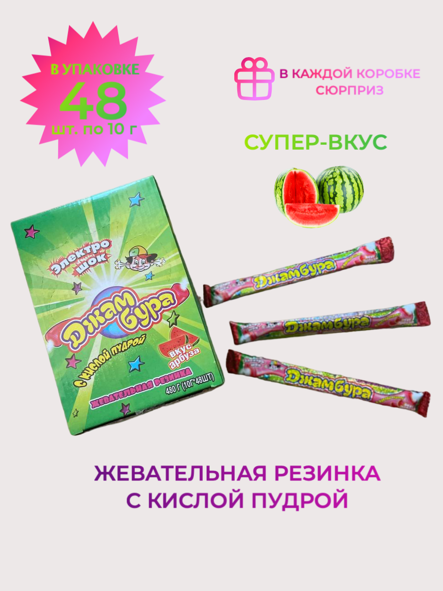 Купить Жевательная резинка джамбура/электрошок со вкусом арбуза, 48 шт. по 10 грамм
