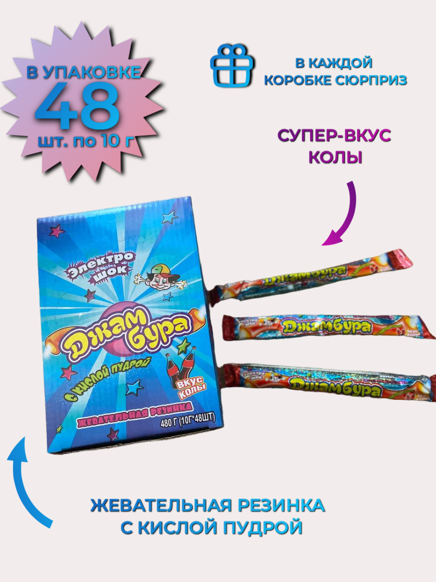 Купить Жевательная резинка джамбура/электрошок со вкусом колы, 48 шт. по 10 грамм