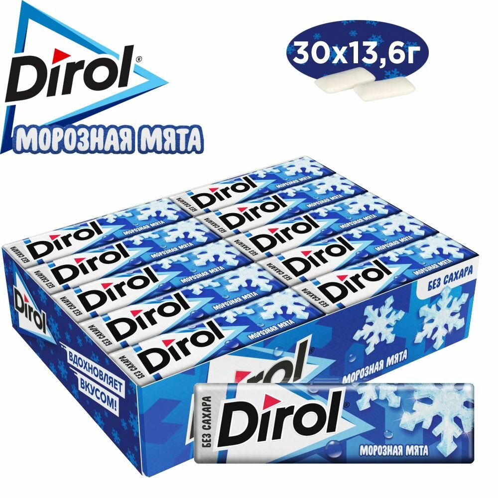 Купить Жевательная резинка Dirol Морозная мята, 1 упаковка 30 шт