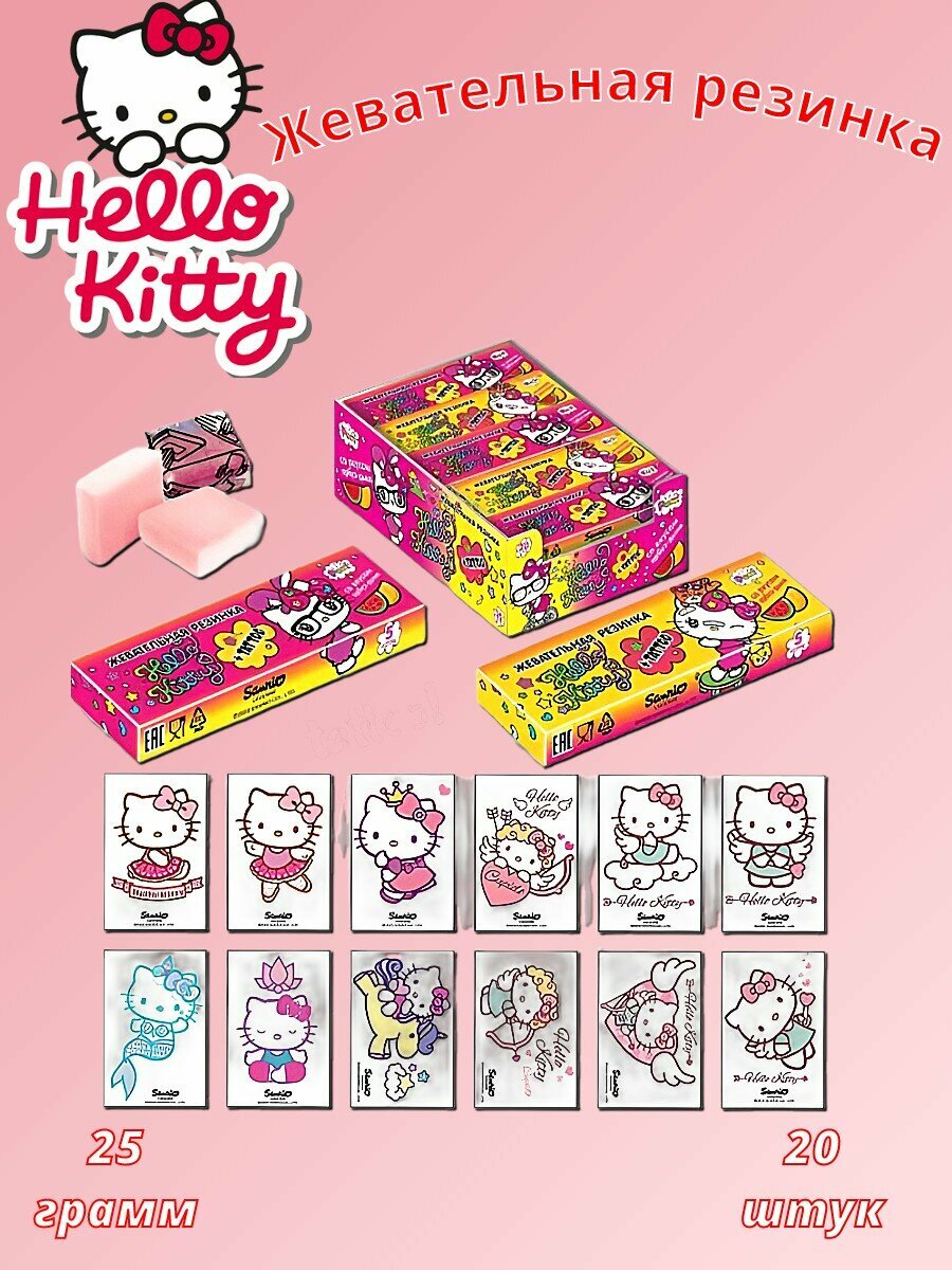 (U) Hello Kitty жевательная резинка в форме кубика со вкусом арбуз-дыня 25г 20шт интересное: