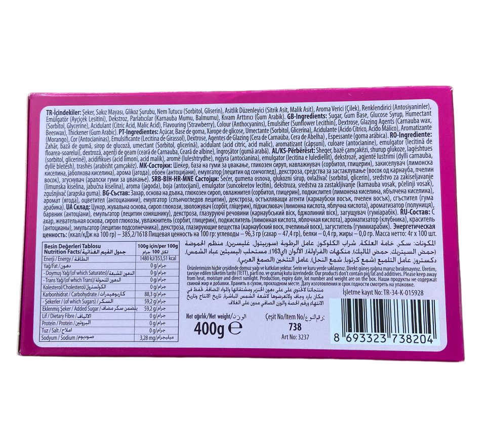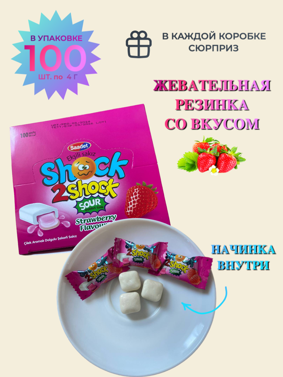 Жевательная резинка с жидким центром Saadet SHOCK клубника, 100 шт. по 4 грамма интересное: