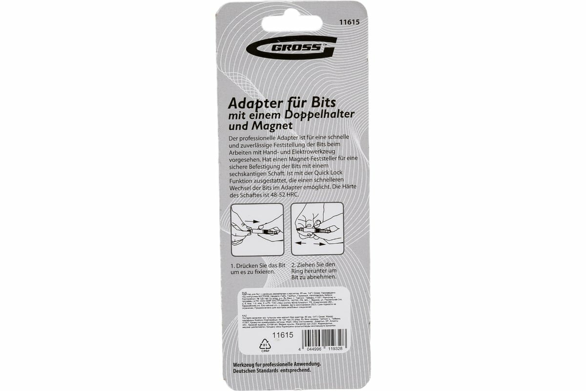 Адаптер для бит Gross 11615, с двойным держателем и магнитом, 65мм, 1/4"