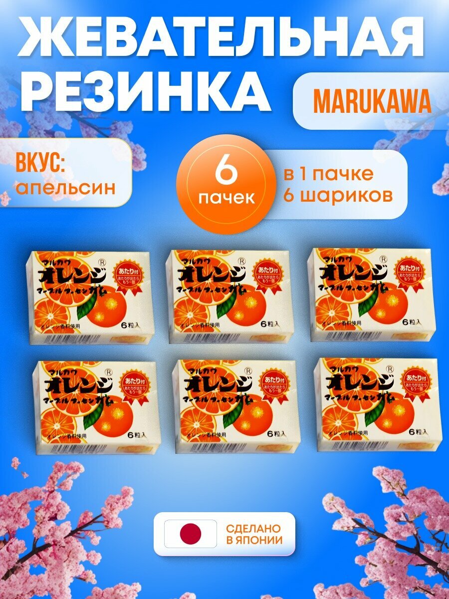 Купить Жевательная резинка "Marukawa", вкус апельсина, 6 шаров, 6 шт