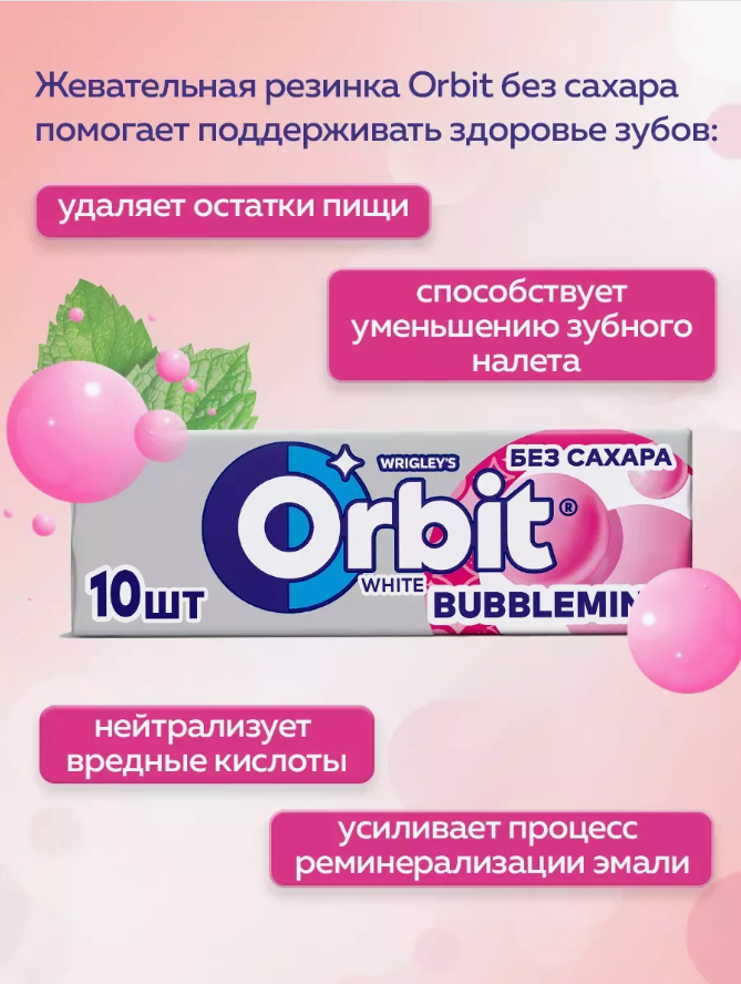 Жевательная резинка Orbit (Орбит) Bubblemint, 30шт по 13,6г интересное: