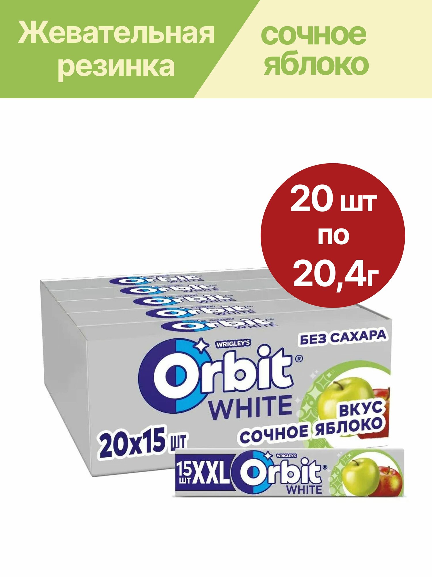 Купить Жевательная резинка Orbit (Орбит) XXL Сочное яблоко, 20шт по 20,4г
