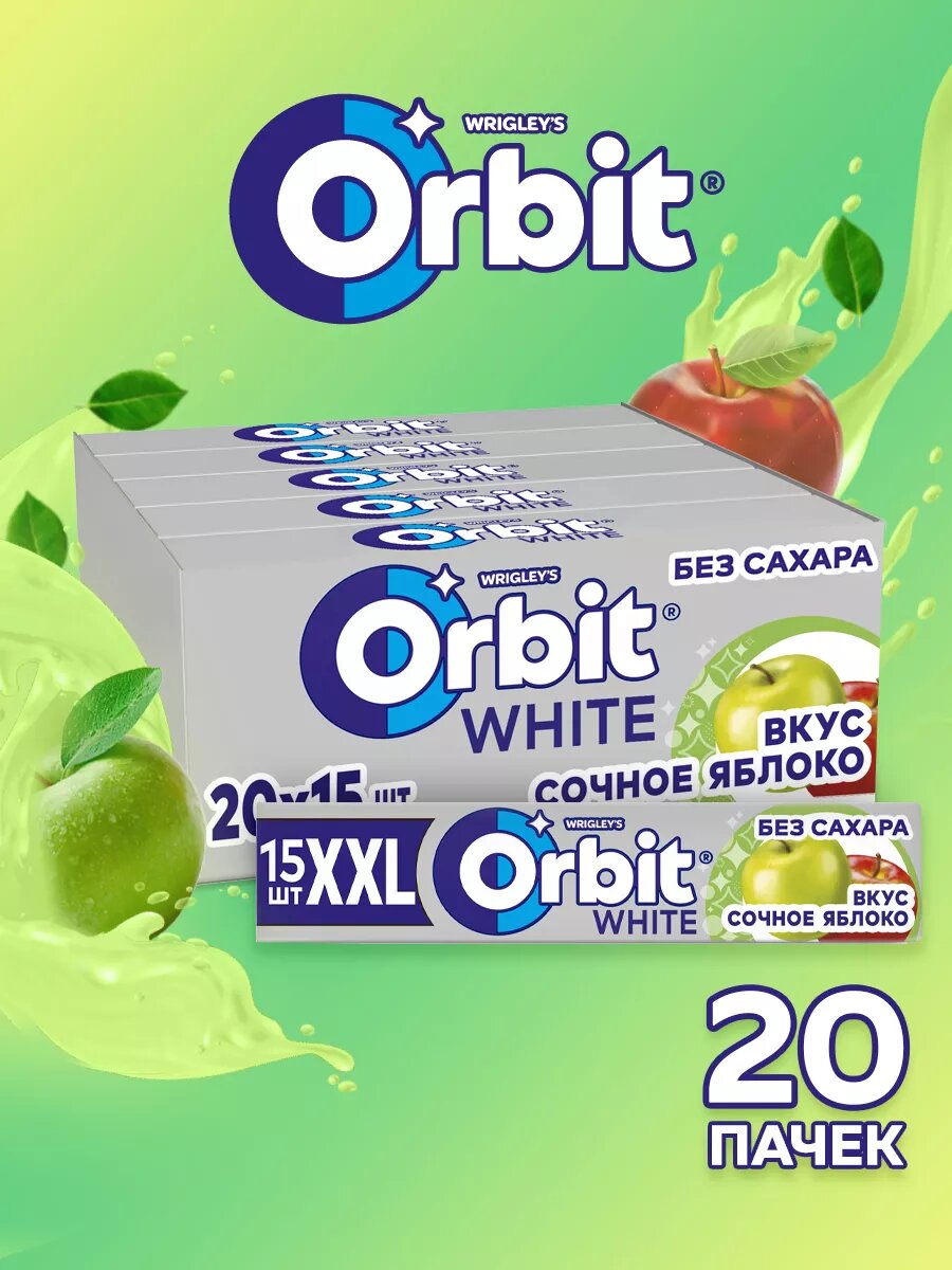 Жевательная резинка Orbit (Орбит) XXL Сочное яблоко, 20шт по 20,4г интересное: