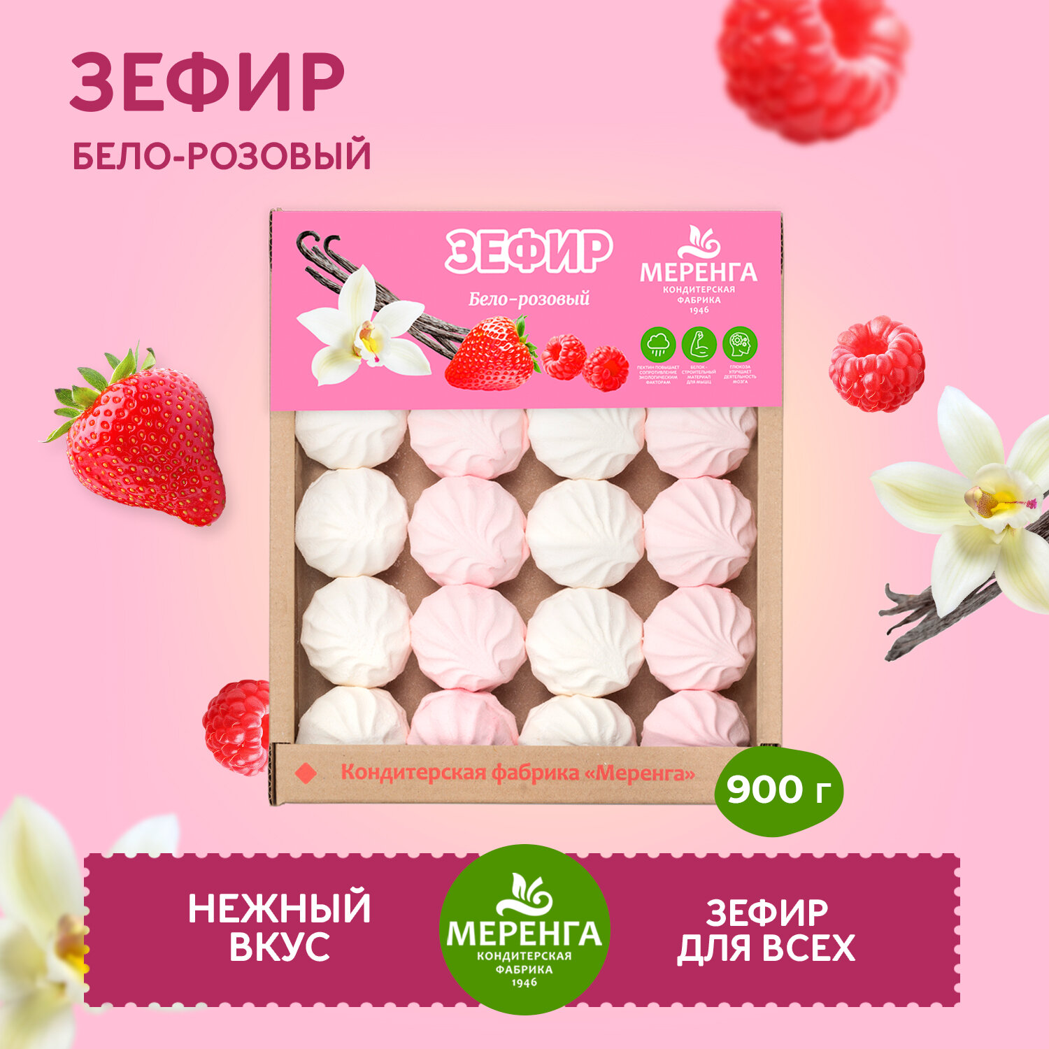 Зефир с ароматом ванили 900 грамм меренга / Классический зефир / Натуральный состав