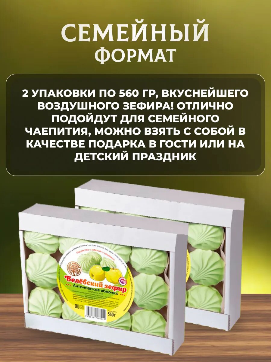 Зефир Натуральный белёвский продукт яблочный 2 шт по 560 г интересное: