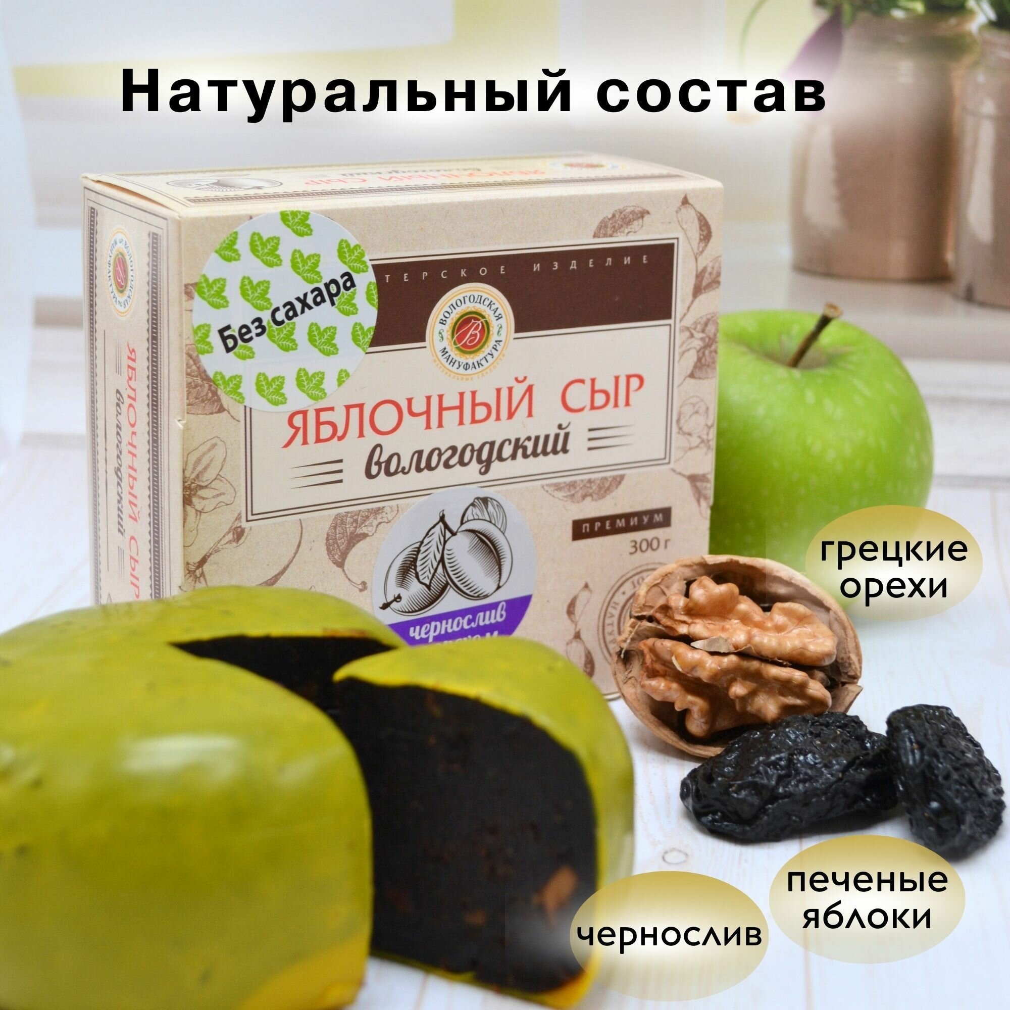 Сыр яблочный без сахара "Вологодская мануфактура" грецким орехом и черносливом 300 гр. интересное:
