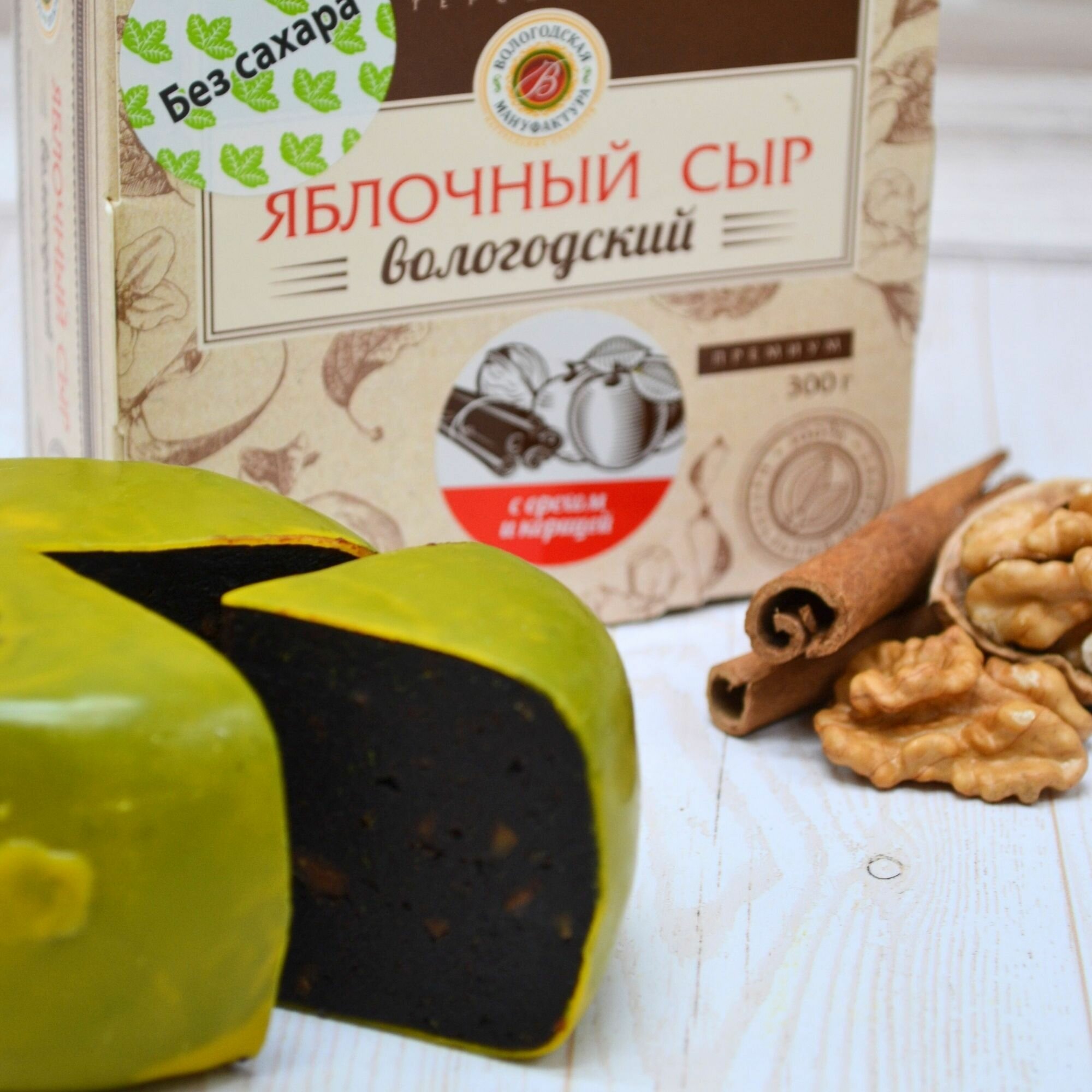 Сыр яблочный без сахара "Вологодская мануфактура" с грецким орехом и корицей 300 гр. интересное: