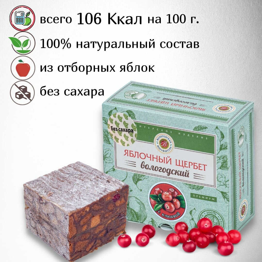 Яблочный щербет без сахара "Вологодская мануфактура" с клюквой 250 гр. интересное: