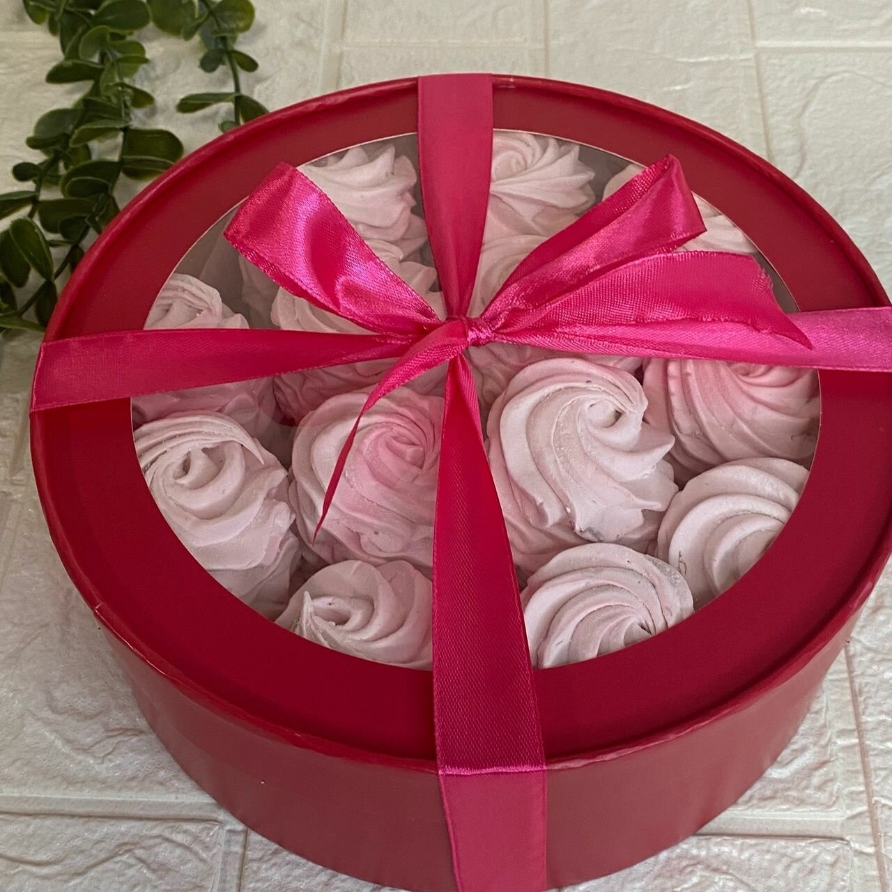Купить Подарочный набор зефира ручной работы со вкусом вишни 13 шт в шляпной коробке 20 см.