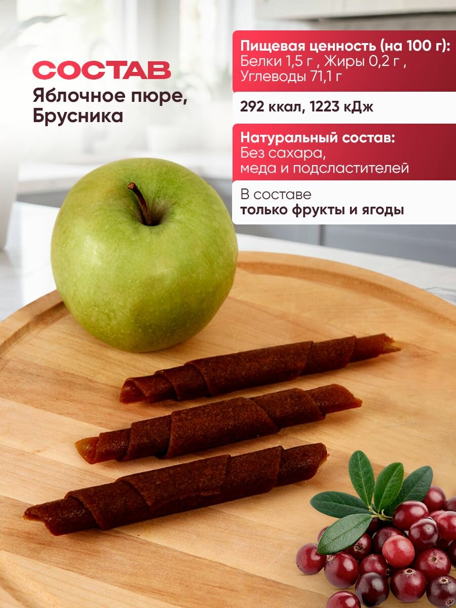 Яблочные Хрустики из пастилы Русские традиции с клюквой 250г