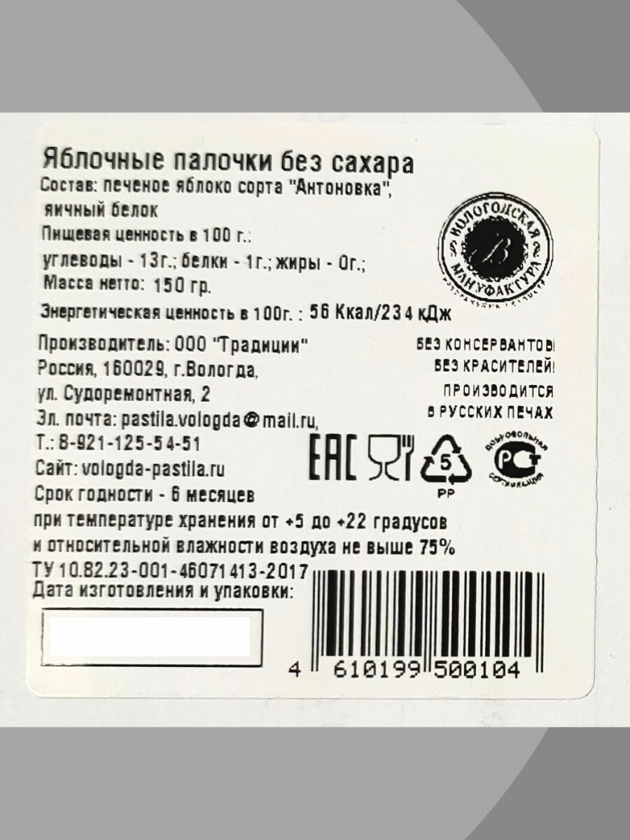 Яблочные палочки Фитнес "Вологодская мануфактура" без сахара 150 гр. интересное: