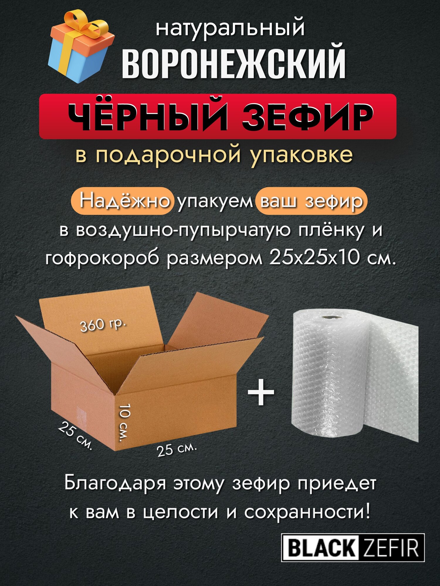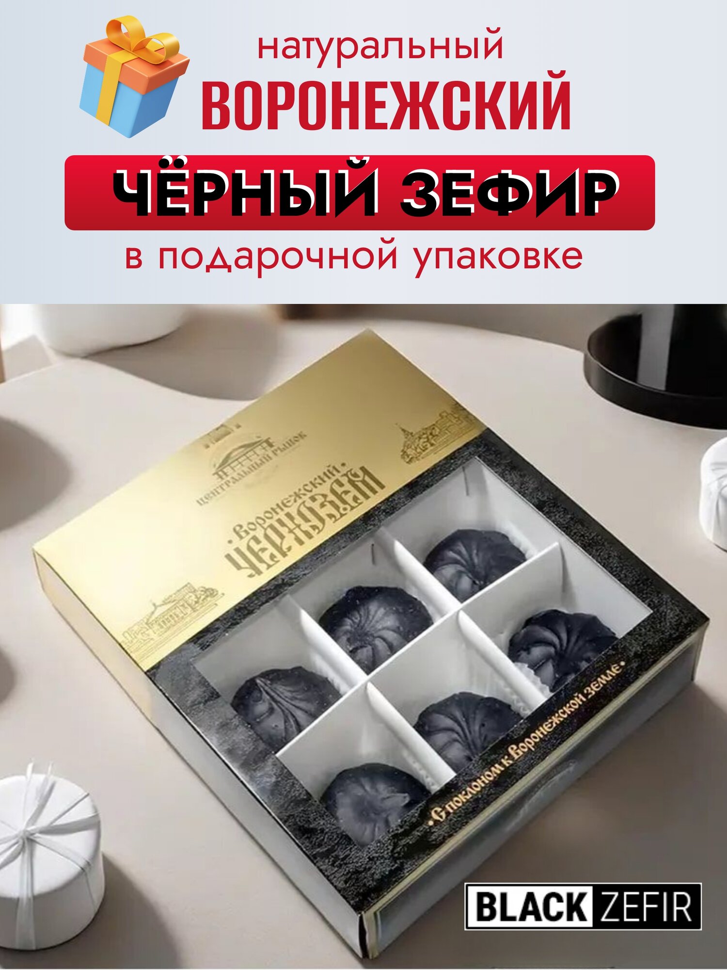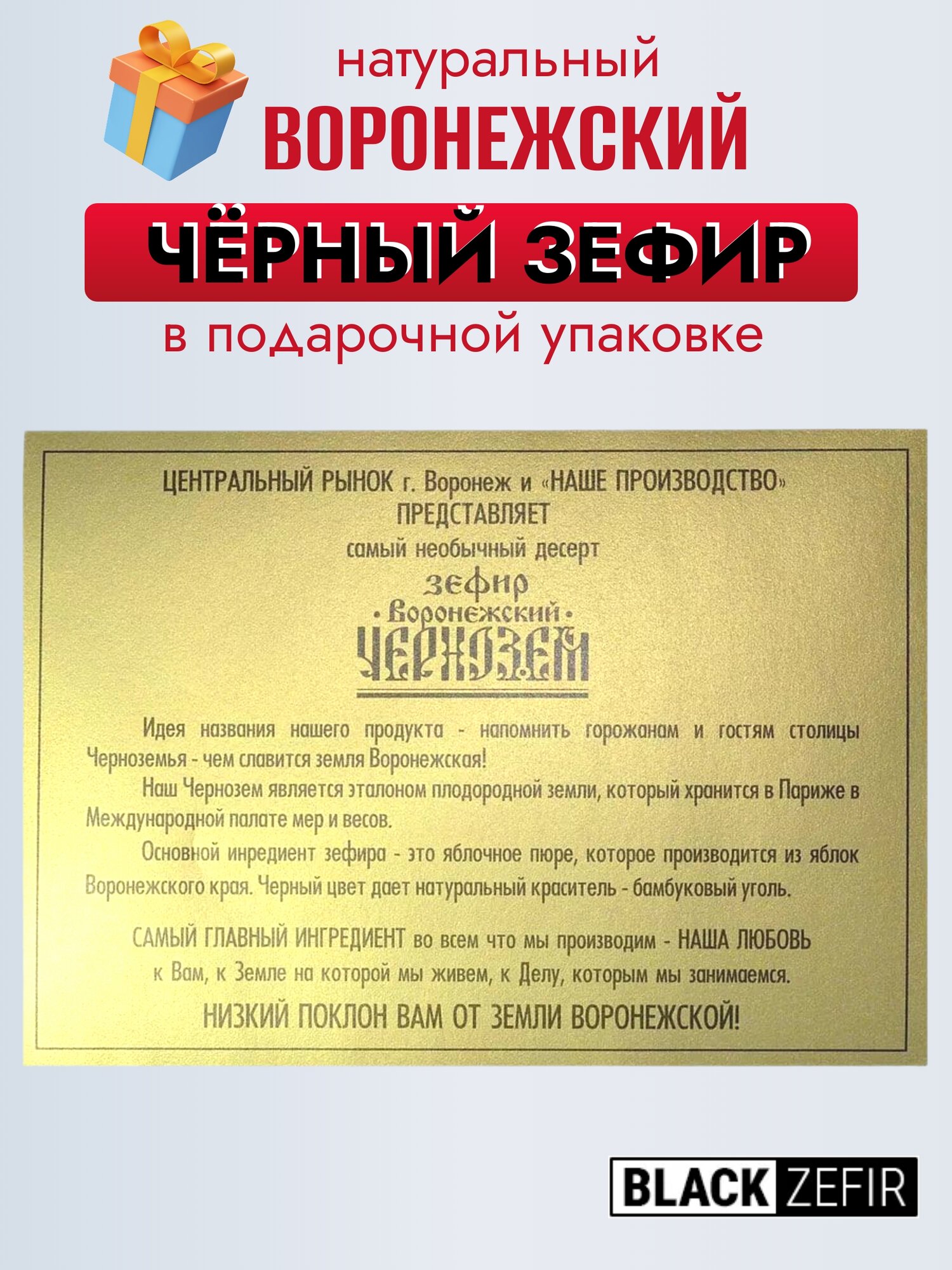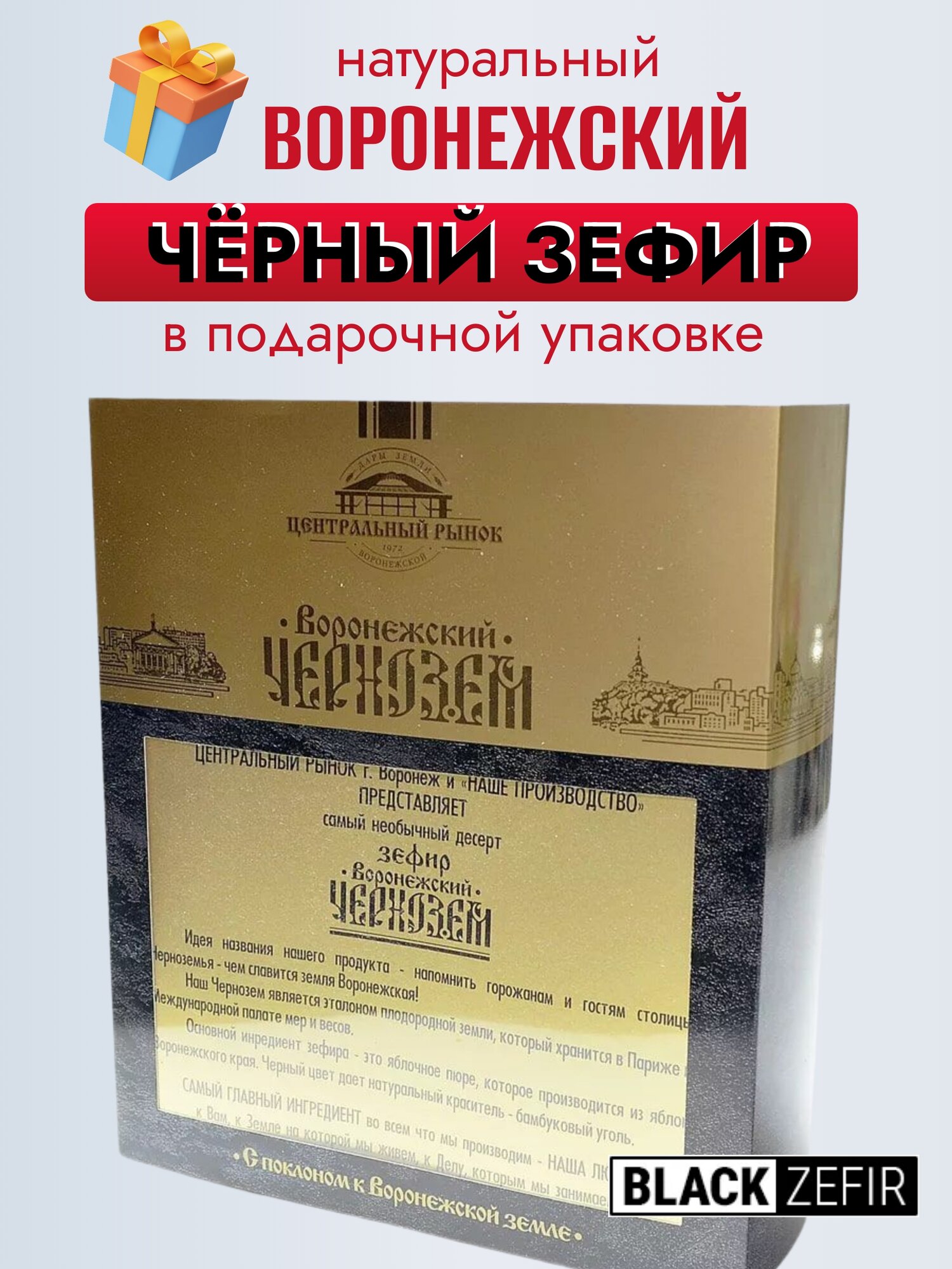 Чёрный зефир в подарочной упаковке с прозрачным окном "Воронежский чернозём", 9 шт, 300г, 1 уп. интересное: