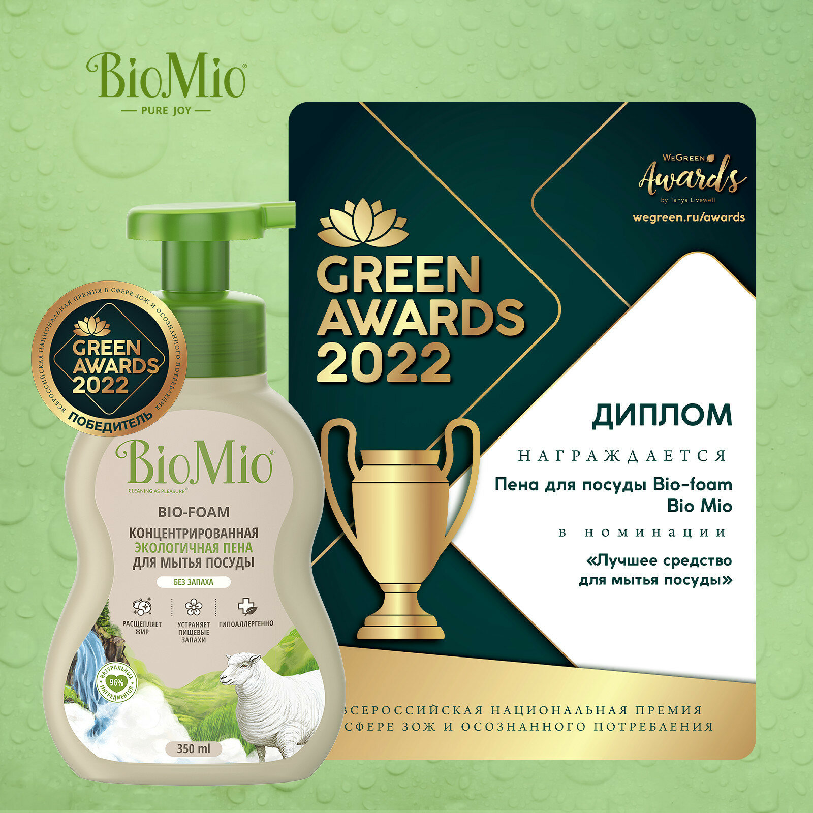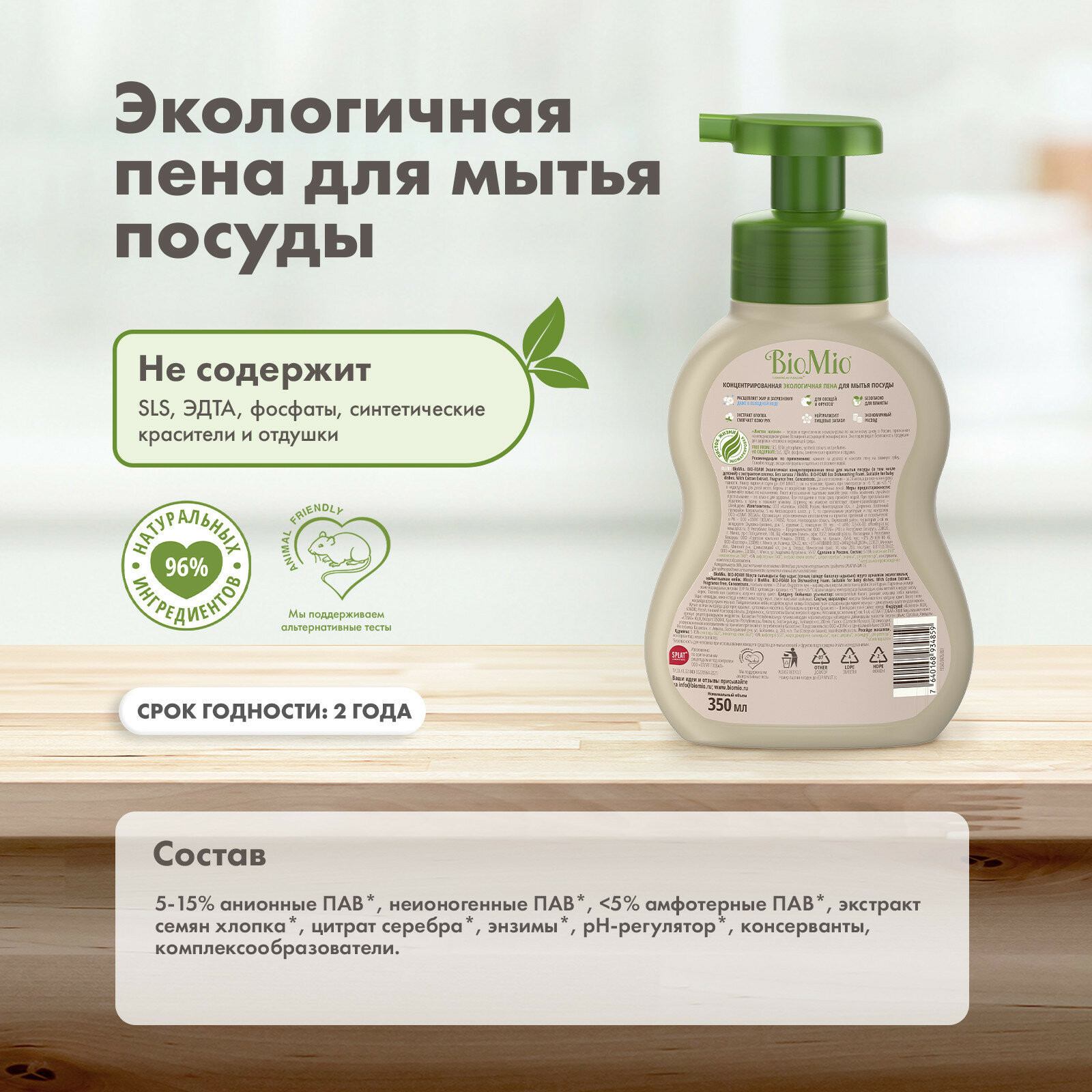 Пена для мытья посуды BioMio BIO-FOAM без запаха экологичная, 350 мл интересное: