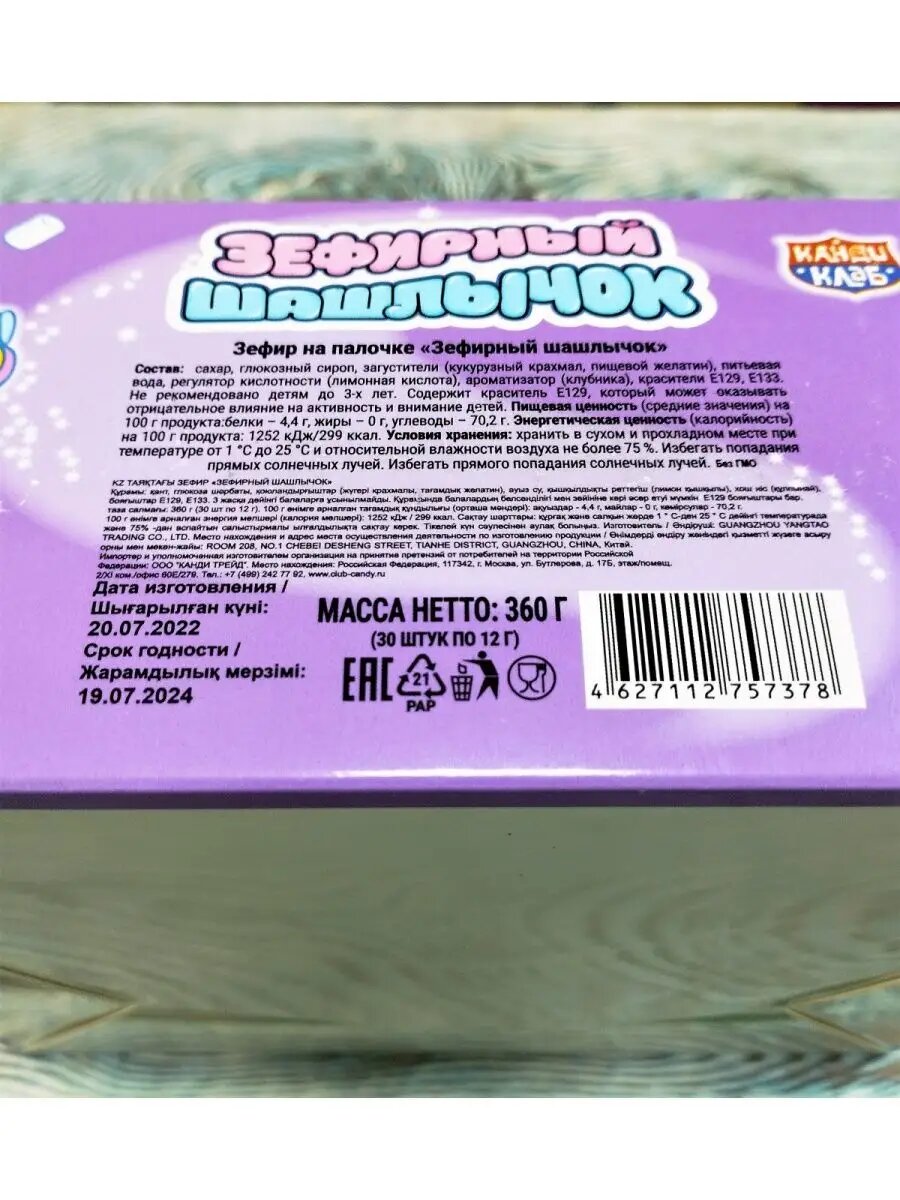 Зефир на палочке зефирный шашлычок, 30 штук по 12 грамм интересное: