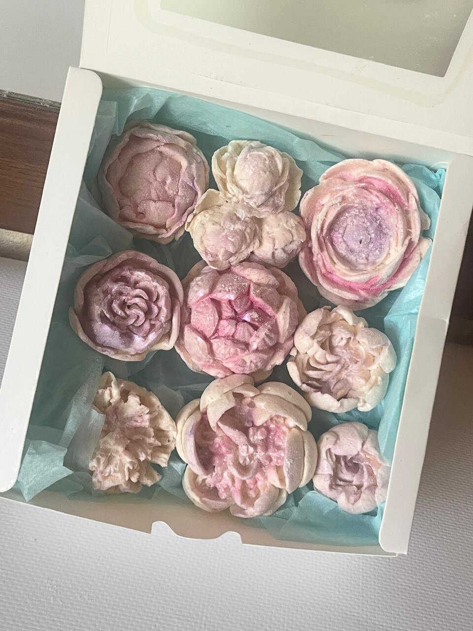 "Зефирные Цветы" ShokoTrendy цветы из зефира ручной работы набор в коробке яблоко-пломбирный вкус, ассорти, 15 цветов