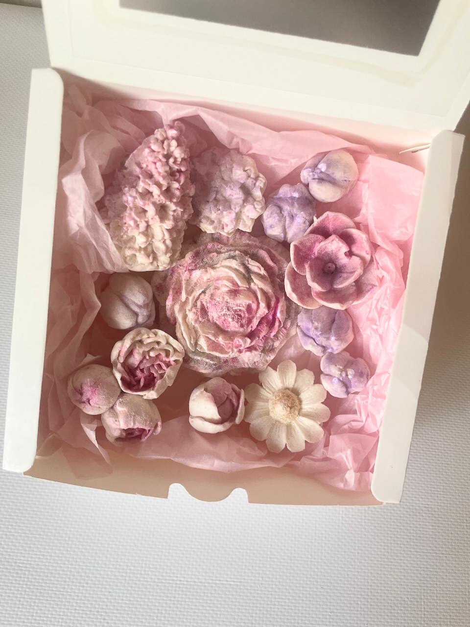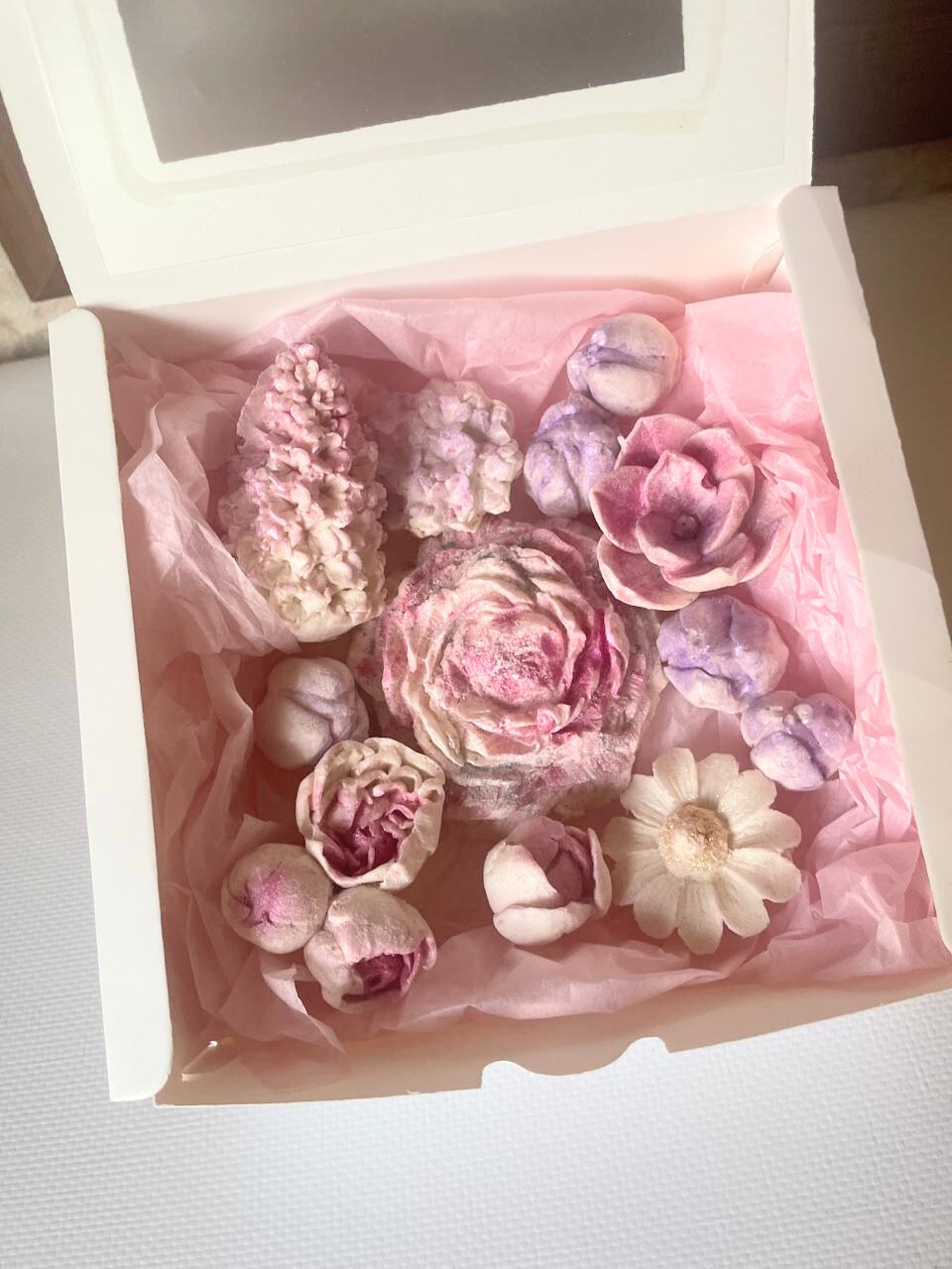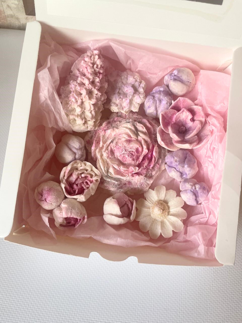 Зефирные цветы ShokoTrendy Цветы из зефира ручной работы набор в коробке, яблоко-пломбир, ассорти, без ГМО, 173г