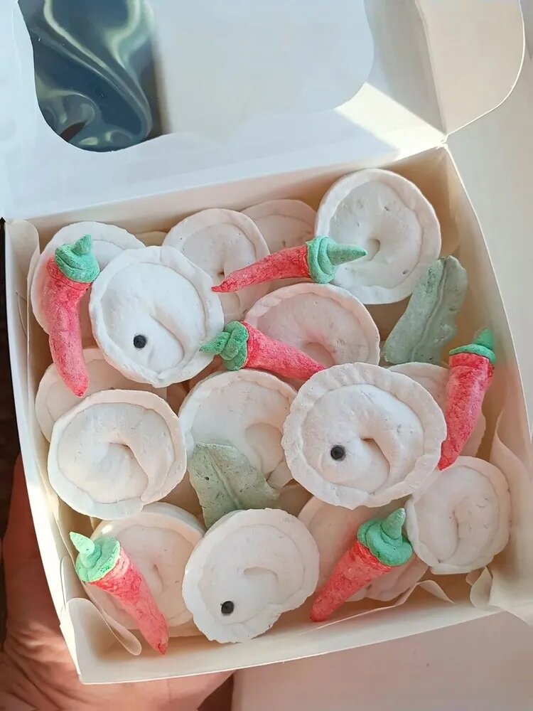 Зефирные пельмени из зефира ручной работы ShokoTrendy, с перчиками в коробке интересное: