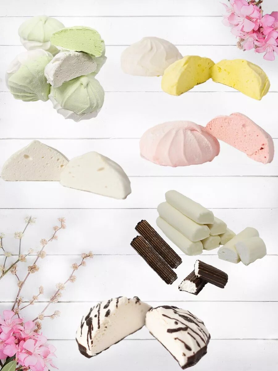 Купить Зефир подарочный набор: зефир в шоколаде, ванильный, дыня, банан, яблоко, смородина, зефирные палочки в шоколаде, 512г