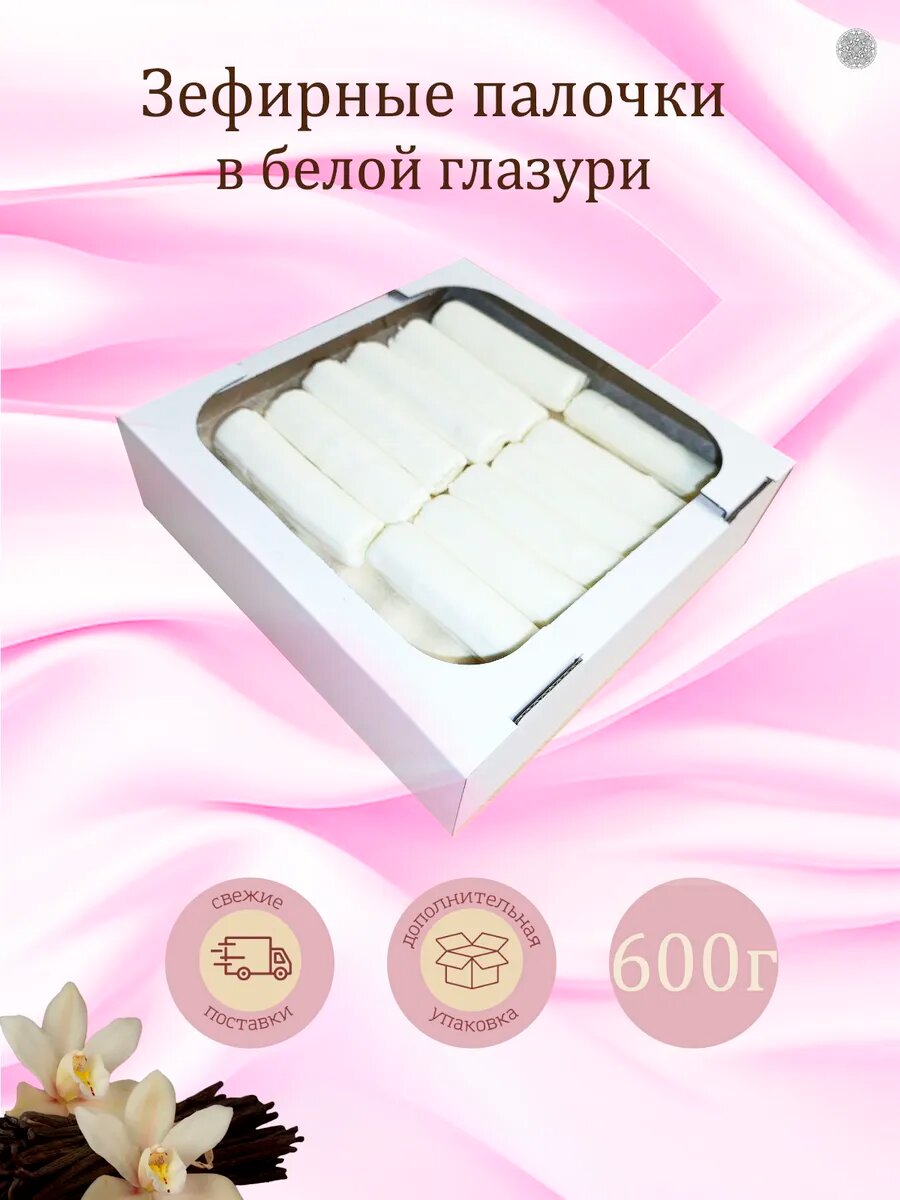 Купить Зефир. Зефирные палочки на натуральном яблочном пюре в белом шоколаде 600г