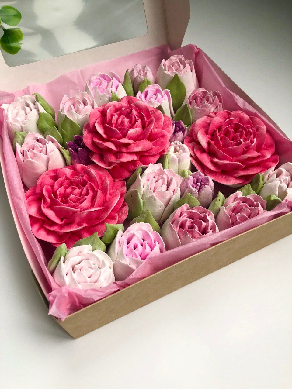 Купить Зефирные цветы ручной работы в подарочной коробке 20*20 см Тюльпаны и Пионы