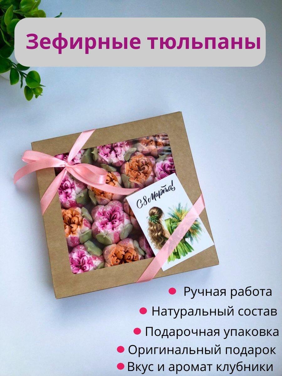 Купить Зефирные тюльпаны в подарочной коробке 20*20 см