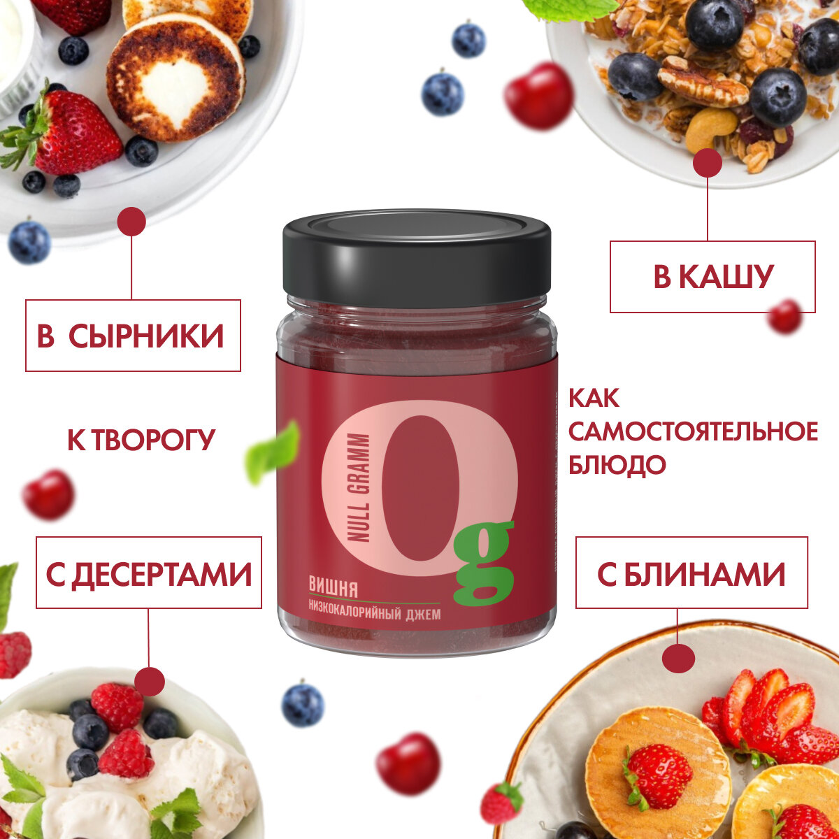 Низкокалорийный вишневый джем без сахара с пребиотиком "Ноль грамм", 260г интересное: