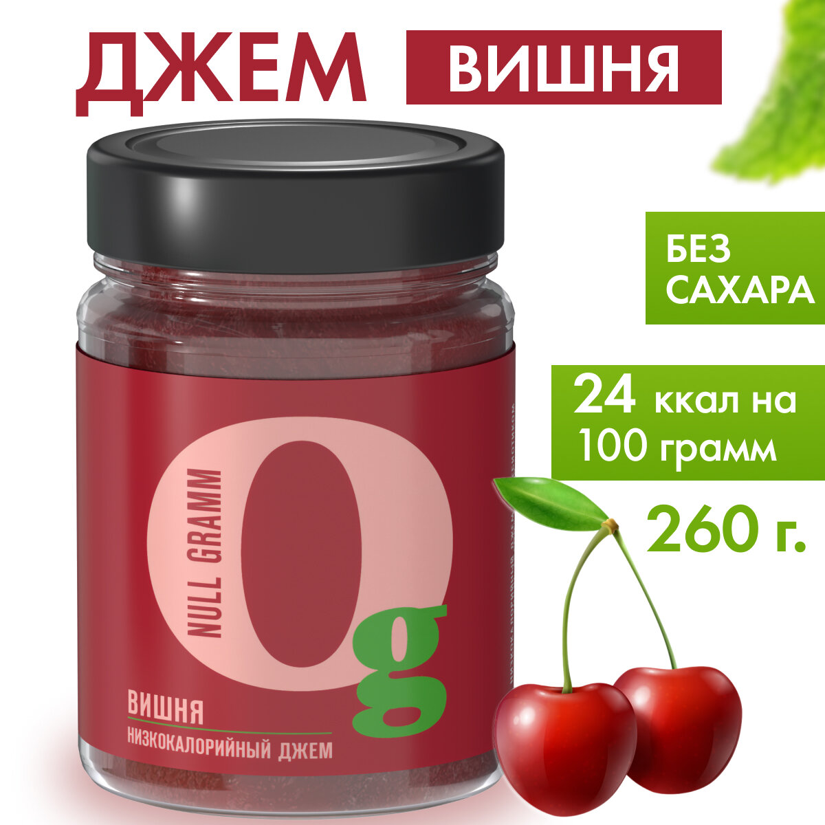 Купить Низкокалорийный вишневый джем без сахара с пребиотиком "Ноль грамм", 260г